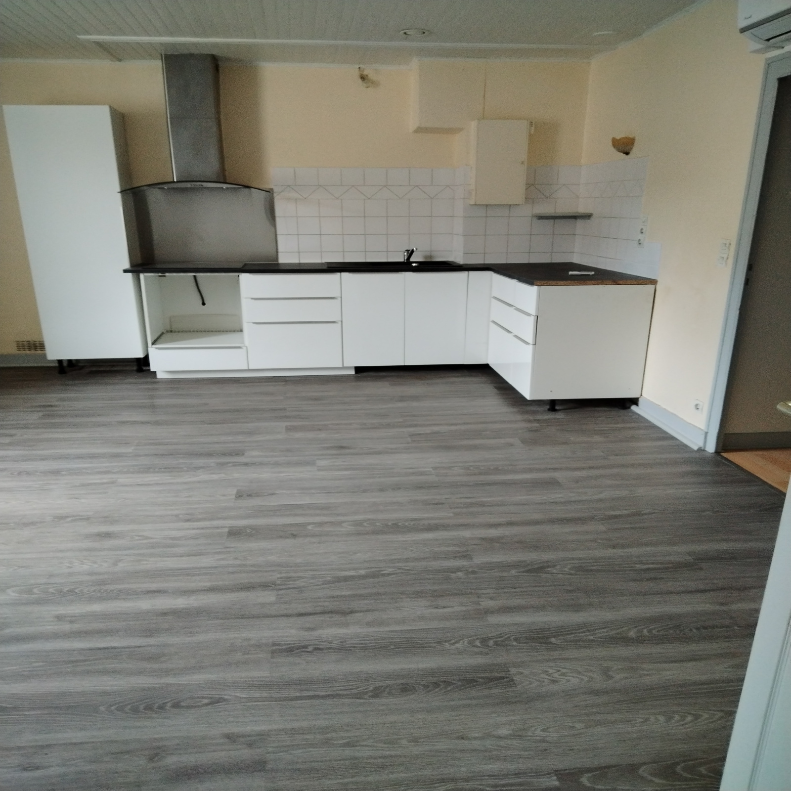 BAZAS à 2 pas des commerces, Appartement T3 situé au 1er étage d'un immeuble de 3 logements, comprenant salon, coin cuisine avec hotte, placards, 2 chambres dont 1 avec placard, salle d'eau avec wc. Climatisation dans le séjour.
