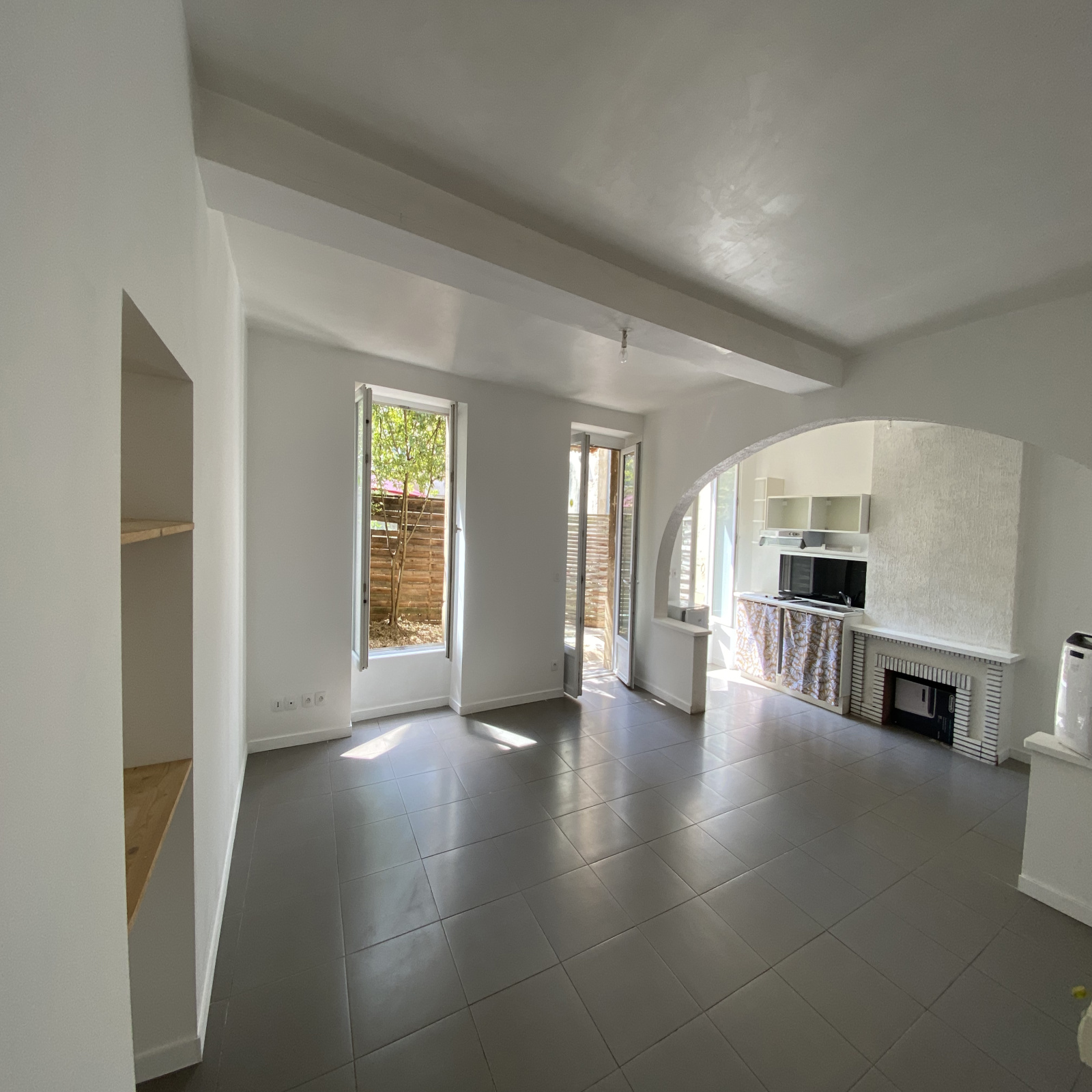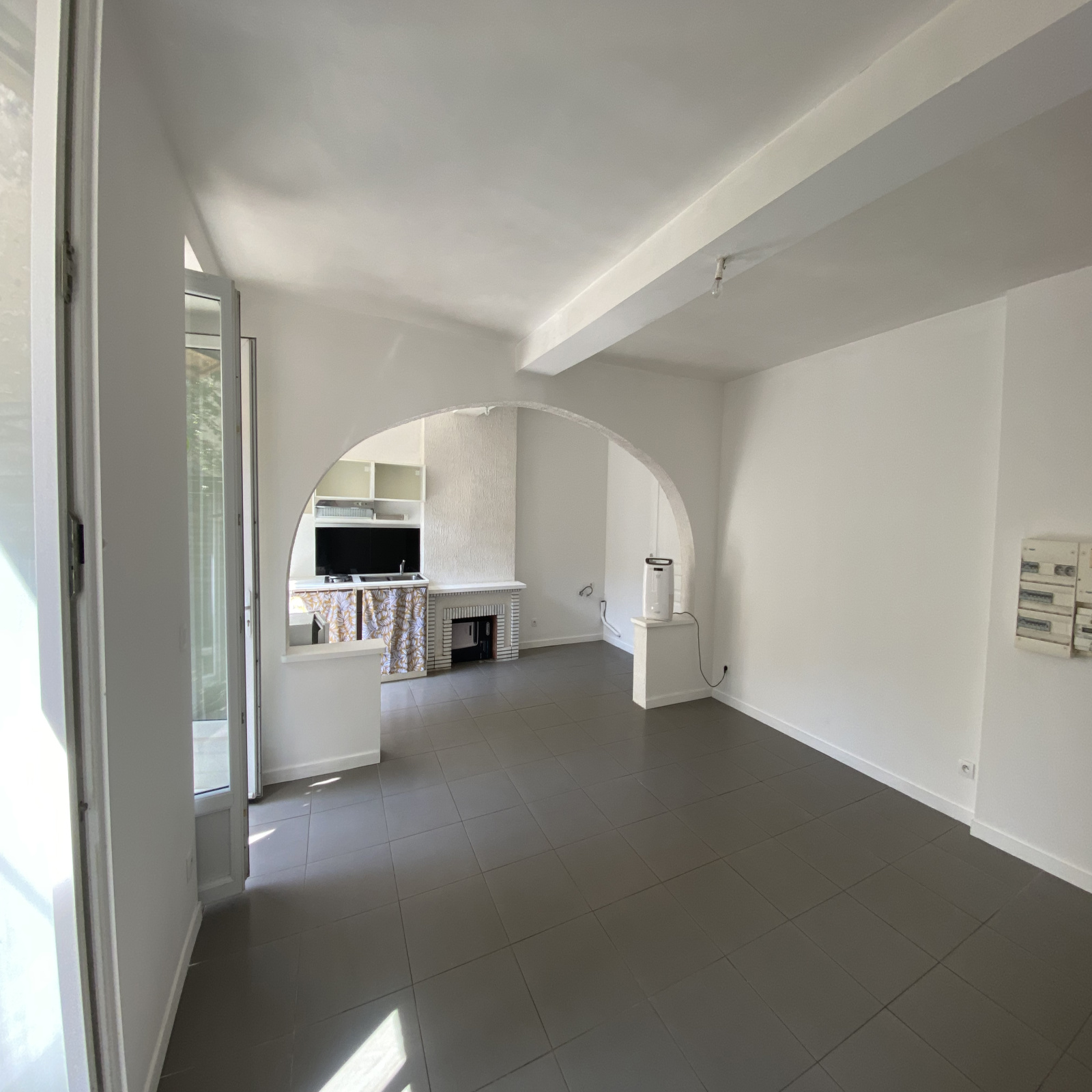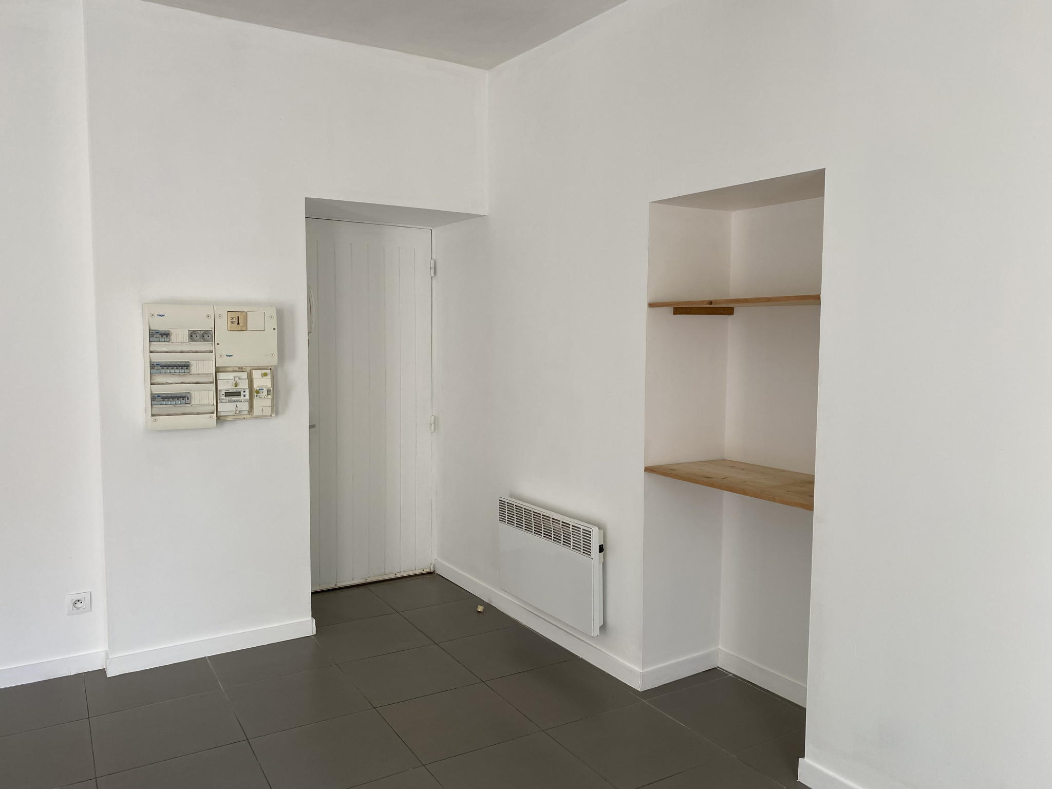 Au coeur du centre ville, studio en rdc, composé d'une pièce de vie, coin cuisine avec hotte et plaques électriques, salle d'eau avec wc, un jardinet