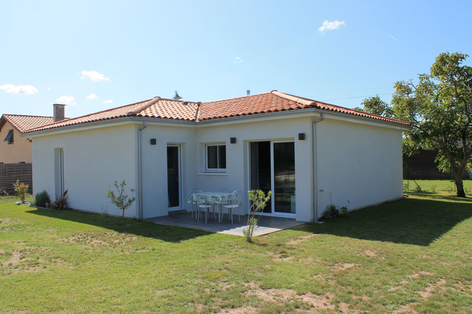 Jardin clos, terrasse, cabanons, abris voiture, portail électrique, climatisation, poele à granulés.