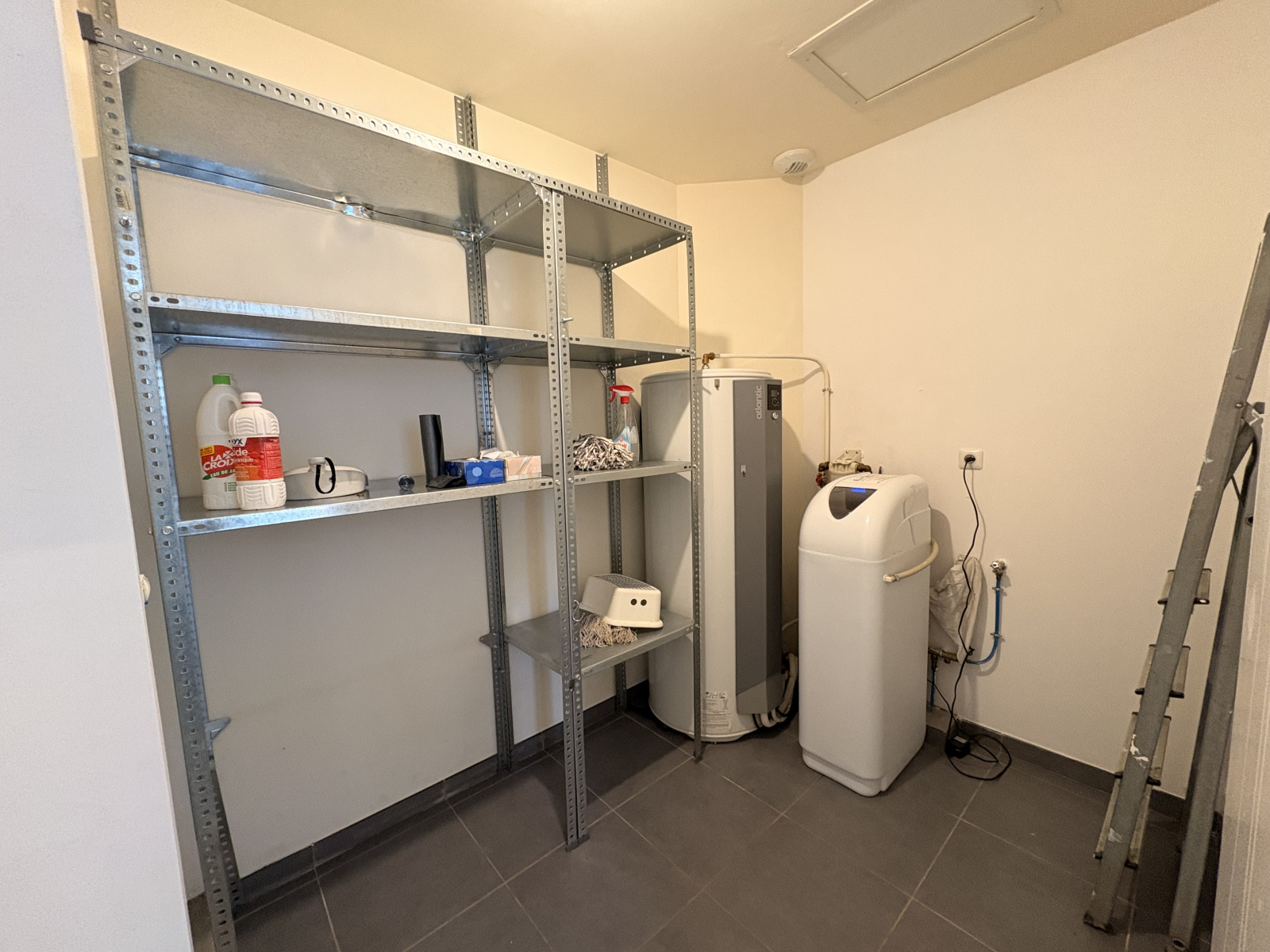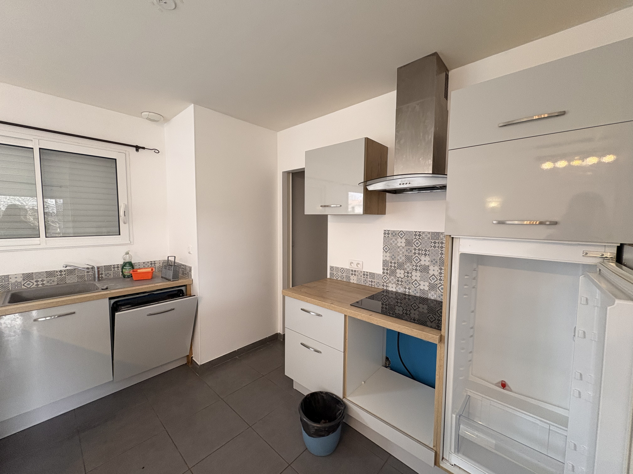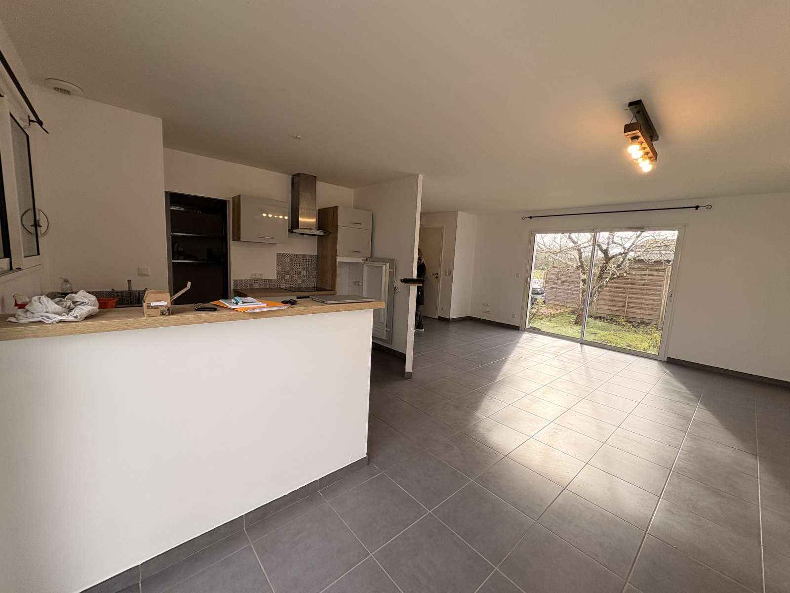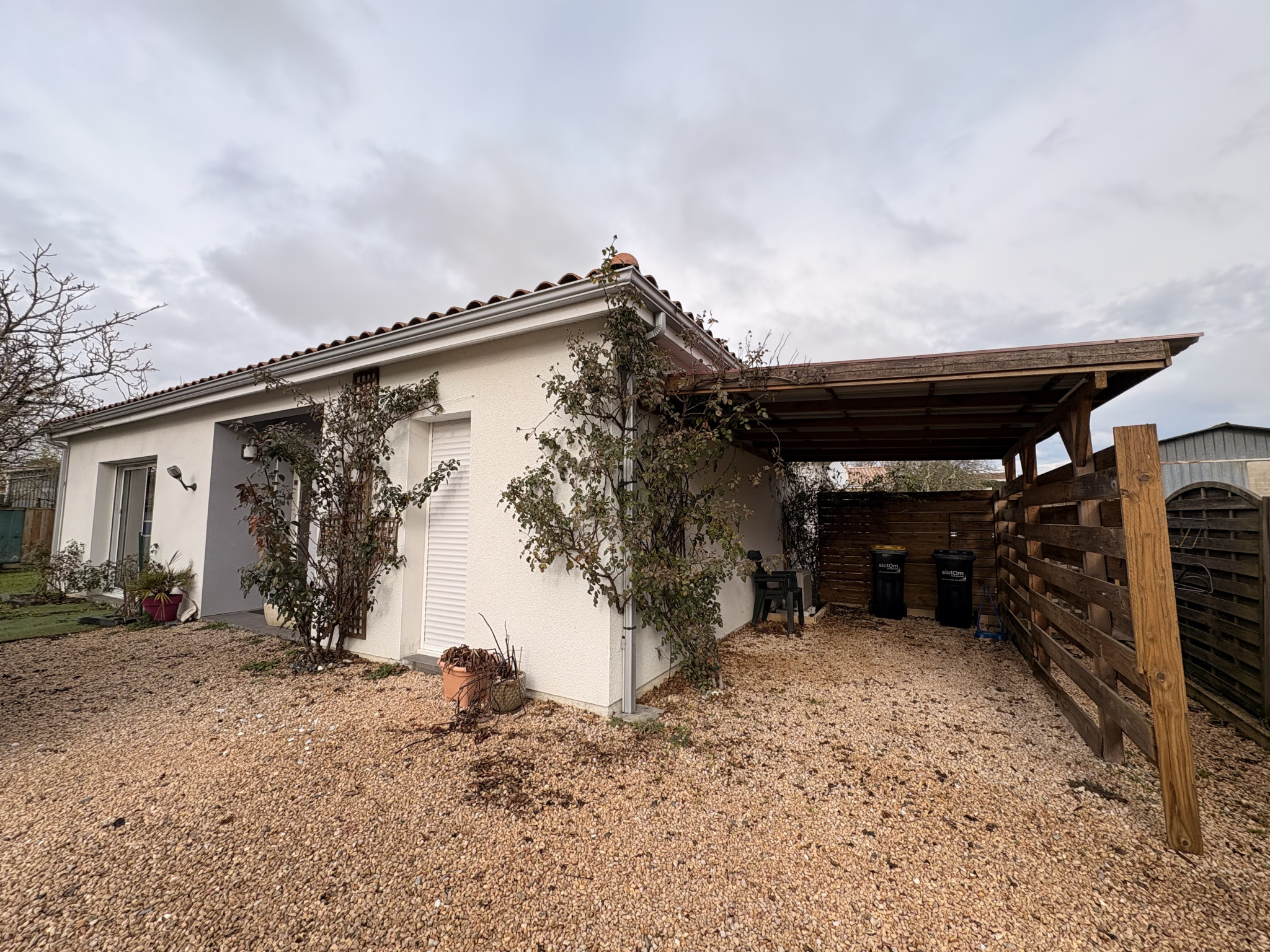 A St Maixant, agréable maison T4 de plain pied, composée d'une entrée avec placard, salon/séjour ouvert sur le coin cuisine, cuisine équipée de placards, hotte et plaque, cellier avec adoucisseur d'eau, 3 chambres avec placard, une salle d'eau, wc séparés.