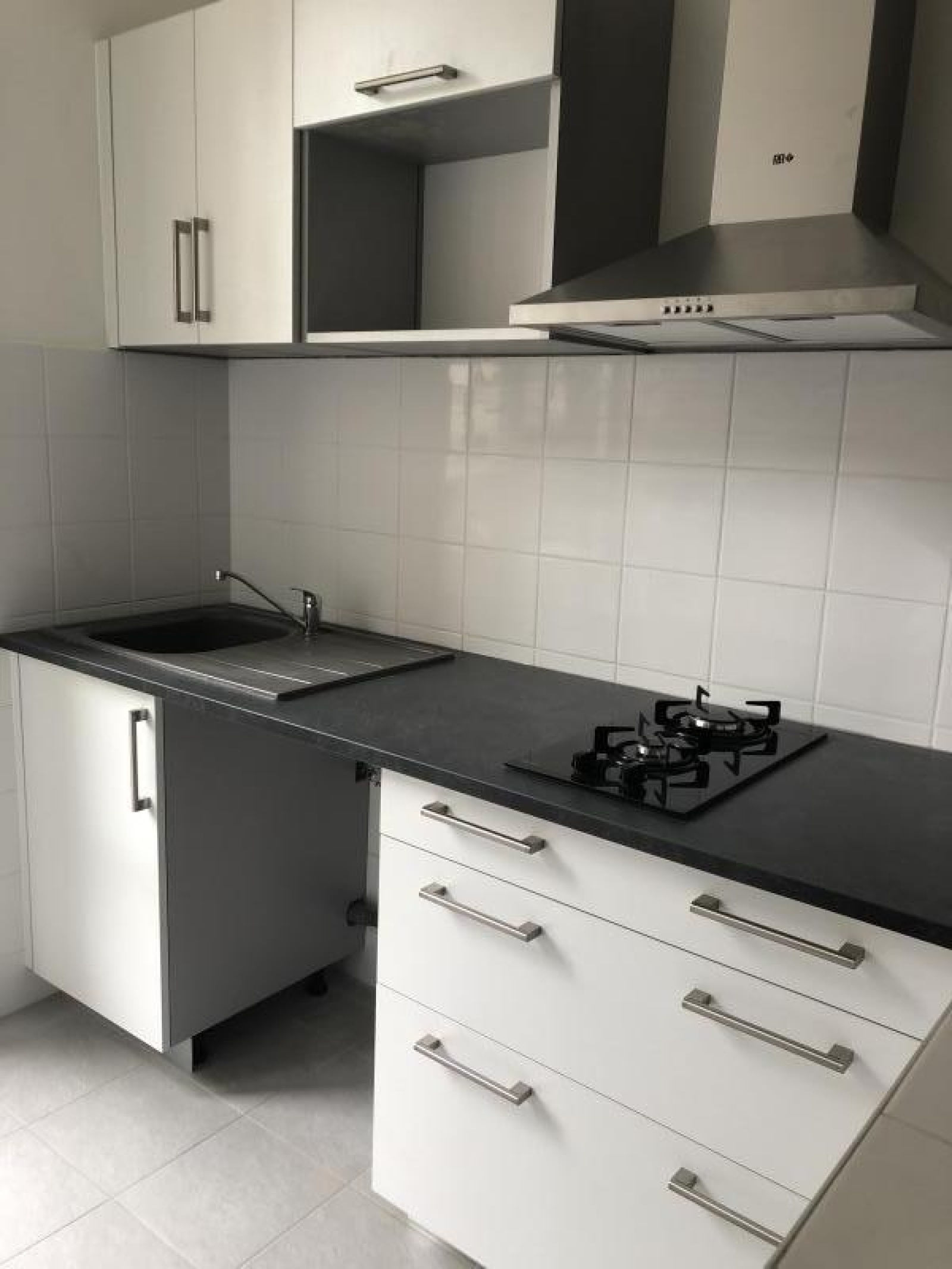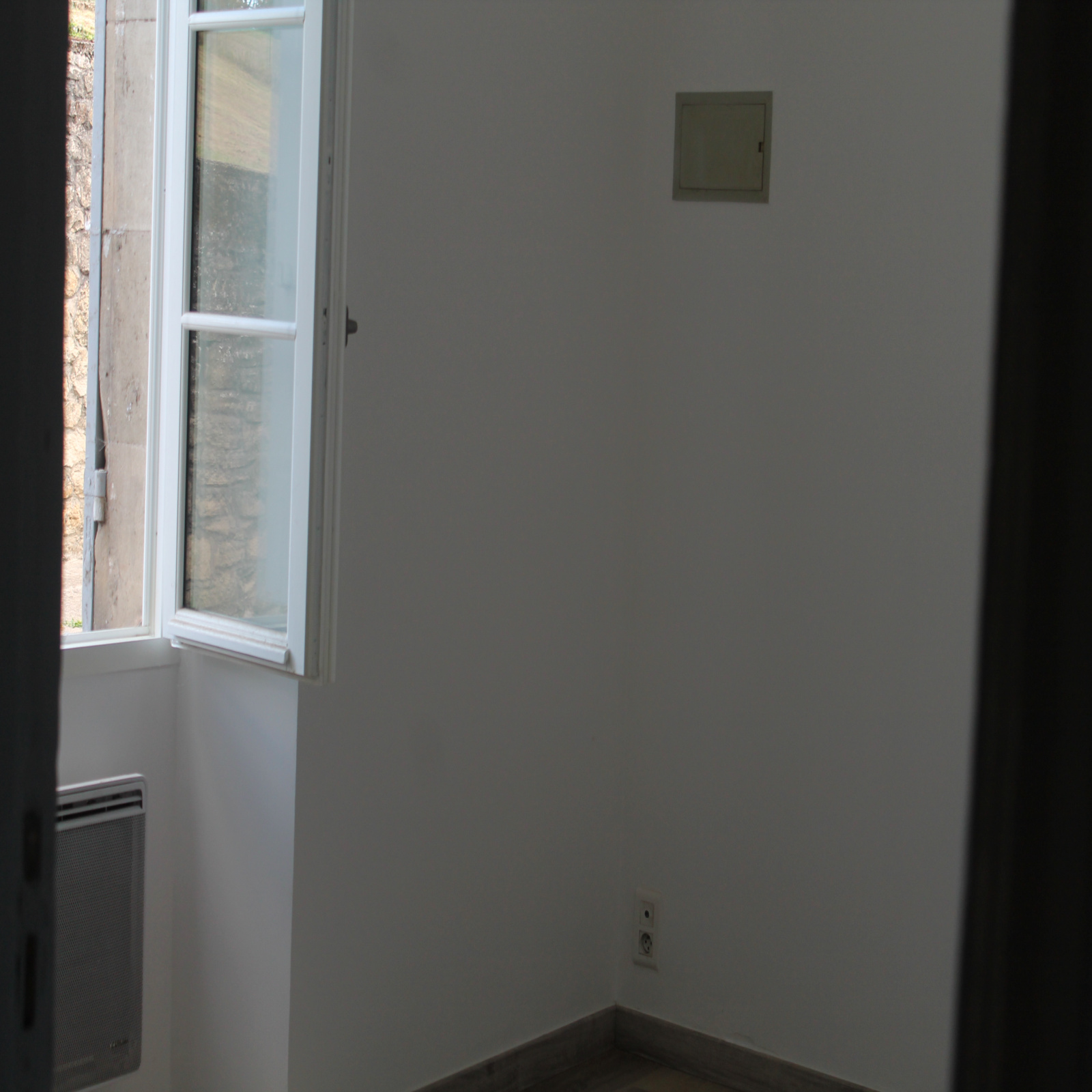 LA REOLE, dans un immeuble de 4 appartements, studio en RDC comprenant pièce principale avec coin cuisine équipée avec placards, plaques et hotte, salle d'eau avec wc. Le logement peut se libérer rapidement.