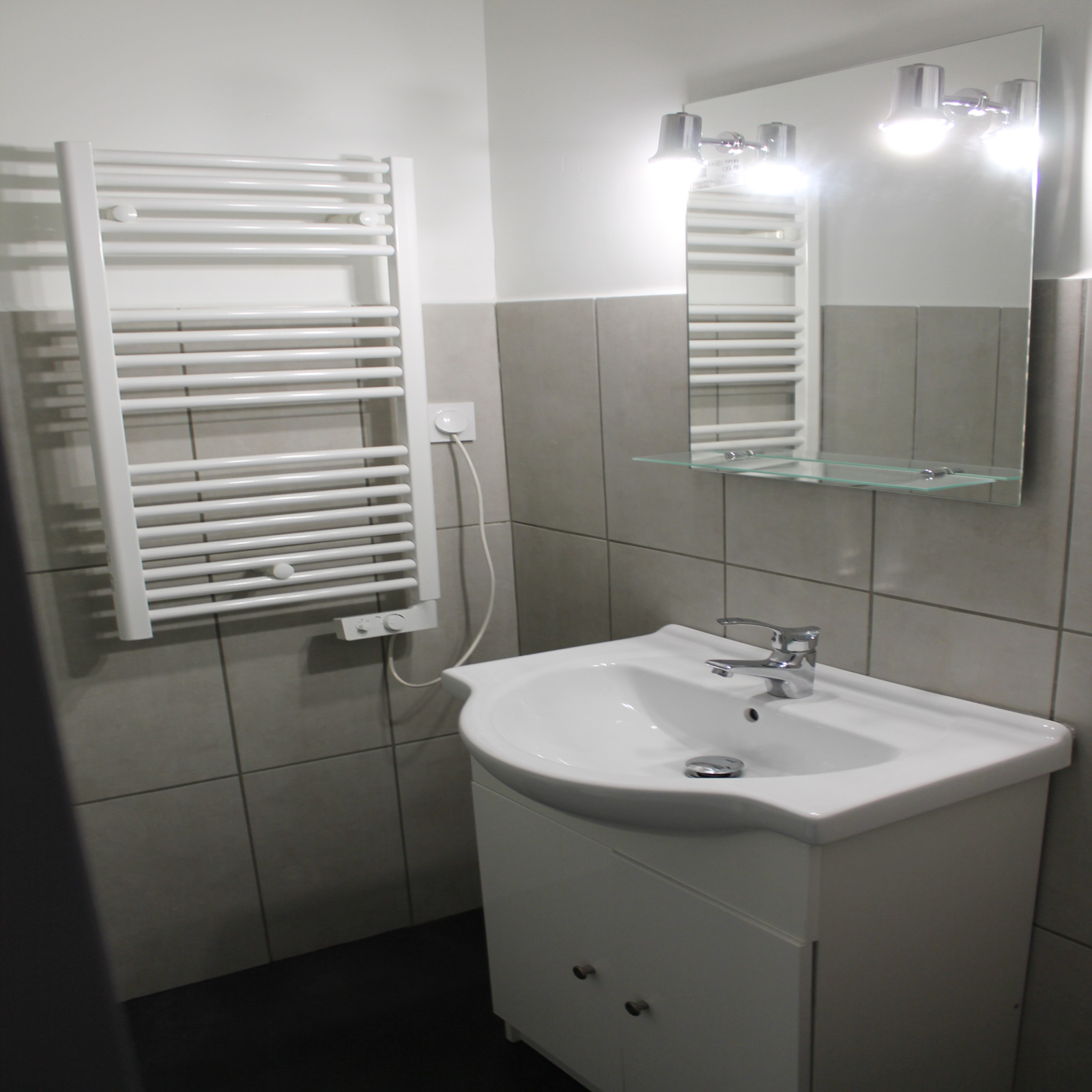 Agréable immeuble du centre ville, appartement T3 situé au 1er étage, composé d'une pièce de vie avec coin cuisine avec hotte, placards et gazinière, une chambre, un cellier, une salle d'eau avec wc, et une deuxième chambre avec sa salle d'eau et son wc.