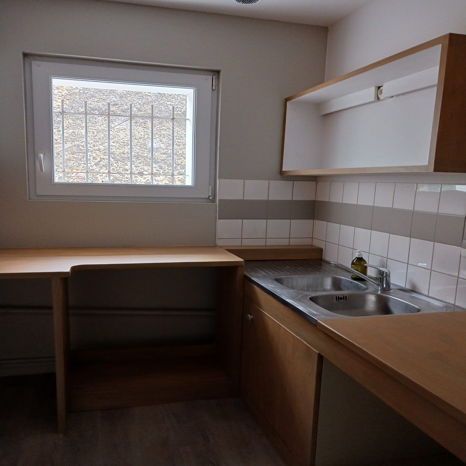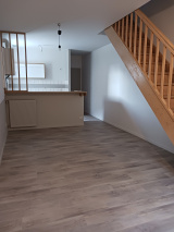 LANGON CENTRE Appt T3 1er étage en duplex comprenant coin cuisine avec hotte et placards, salon séjour, 2 chambres, salle d'eau, wc