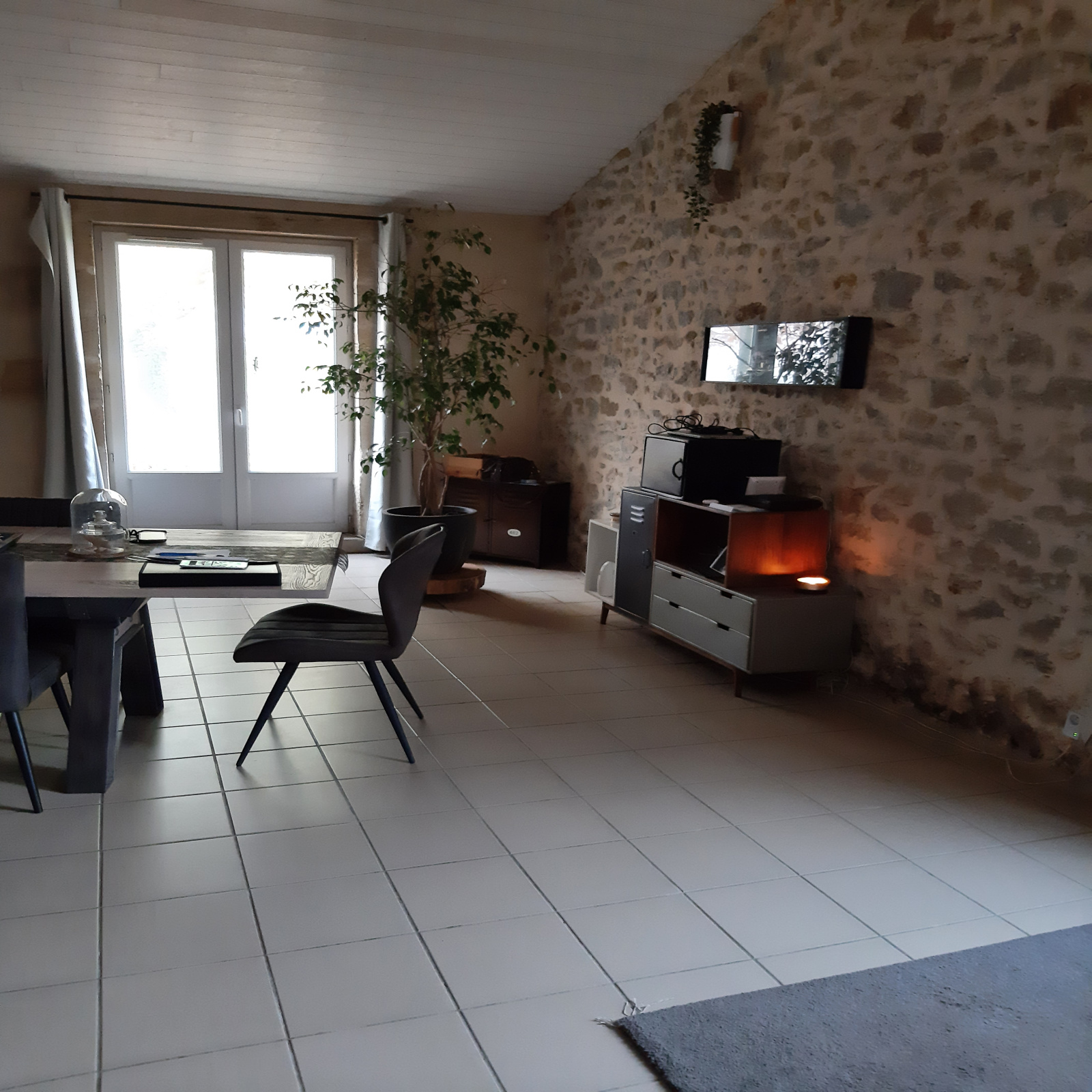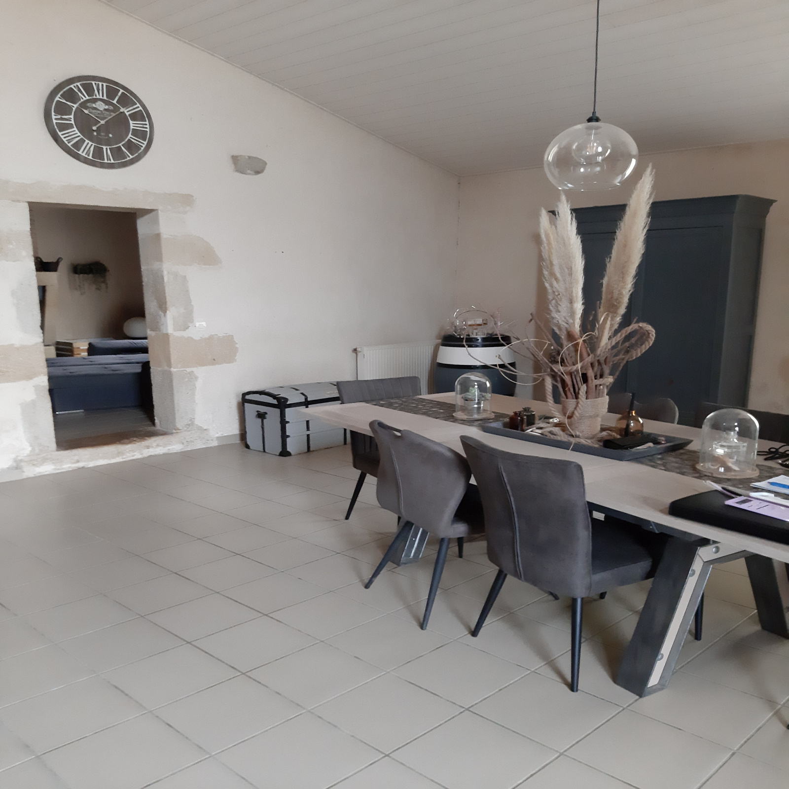 LANGON, secteur au calme, belle maison en pierres T5 comprenant en RDC séjour, salon avec cheminée, cuisine équipée avec hotte, plaque, placard, wc, à l'étage 4 chambres dont 3 avec rangements et 1 avec SDB privative, salle d'eau, wc, Jardin clos, grand garage, terrasse, cellier extérieur. Mode de chauffage; cheminée et chaudière au fioul