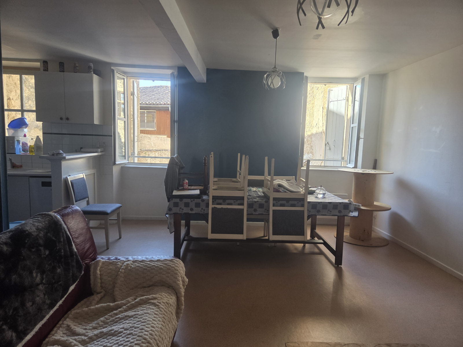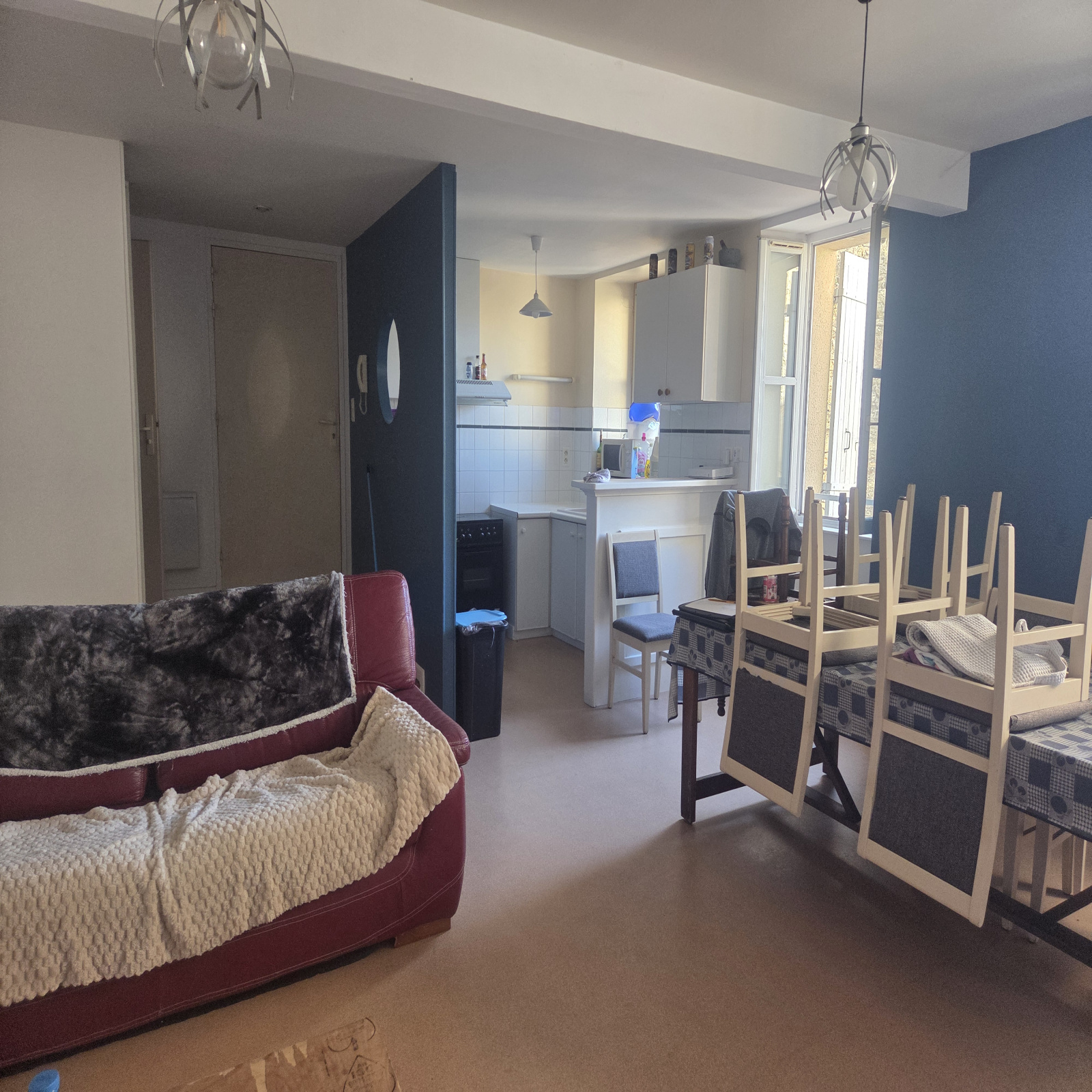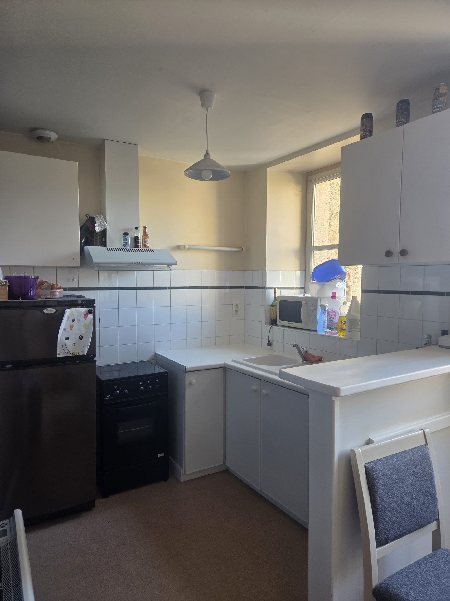 Au coeur de St Macaire, à proximité immédiate des commerces, apt T3 situé au 1er étage, composé d'un entrée avec placard, wc séparé, pièce de vie ouverte sur le coin cuisine avec placards et hotte, cellier, le coin nuit se compose de deux chambres avec placard, une salle de bain avec rangement.