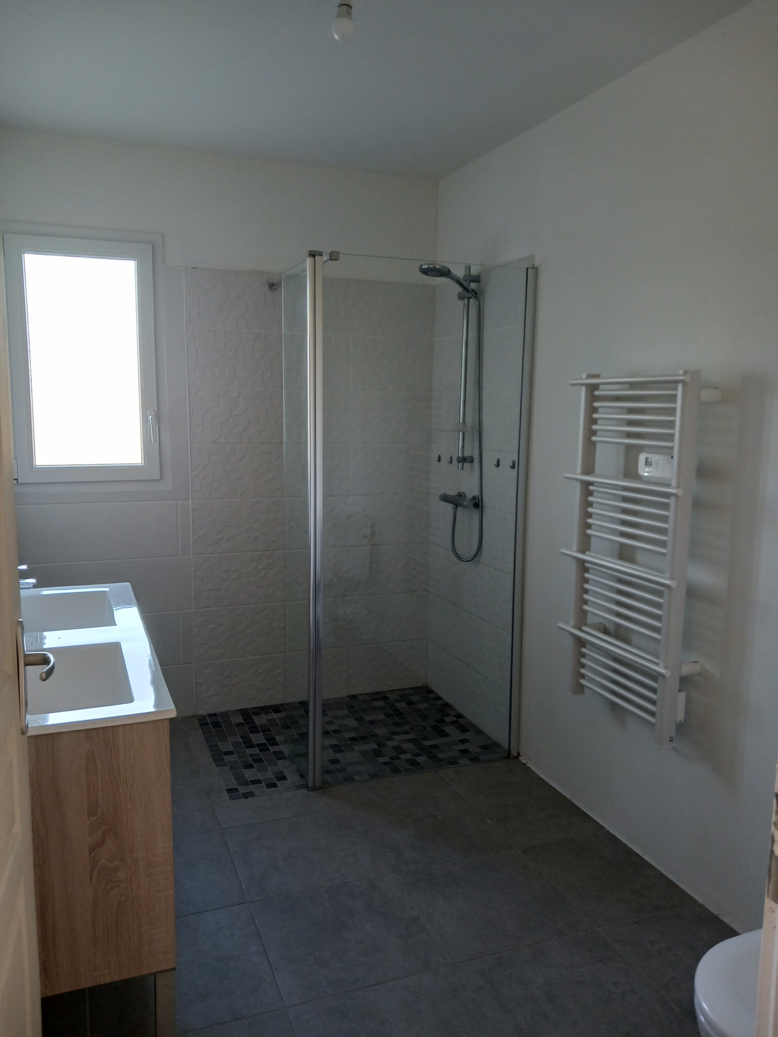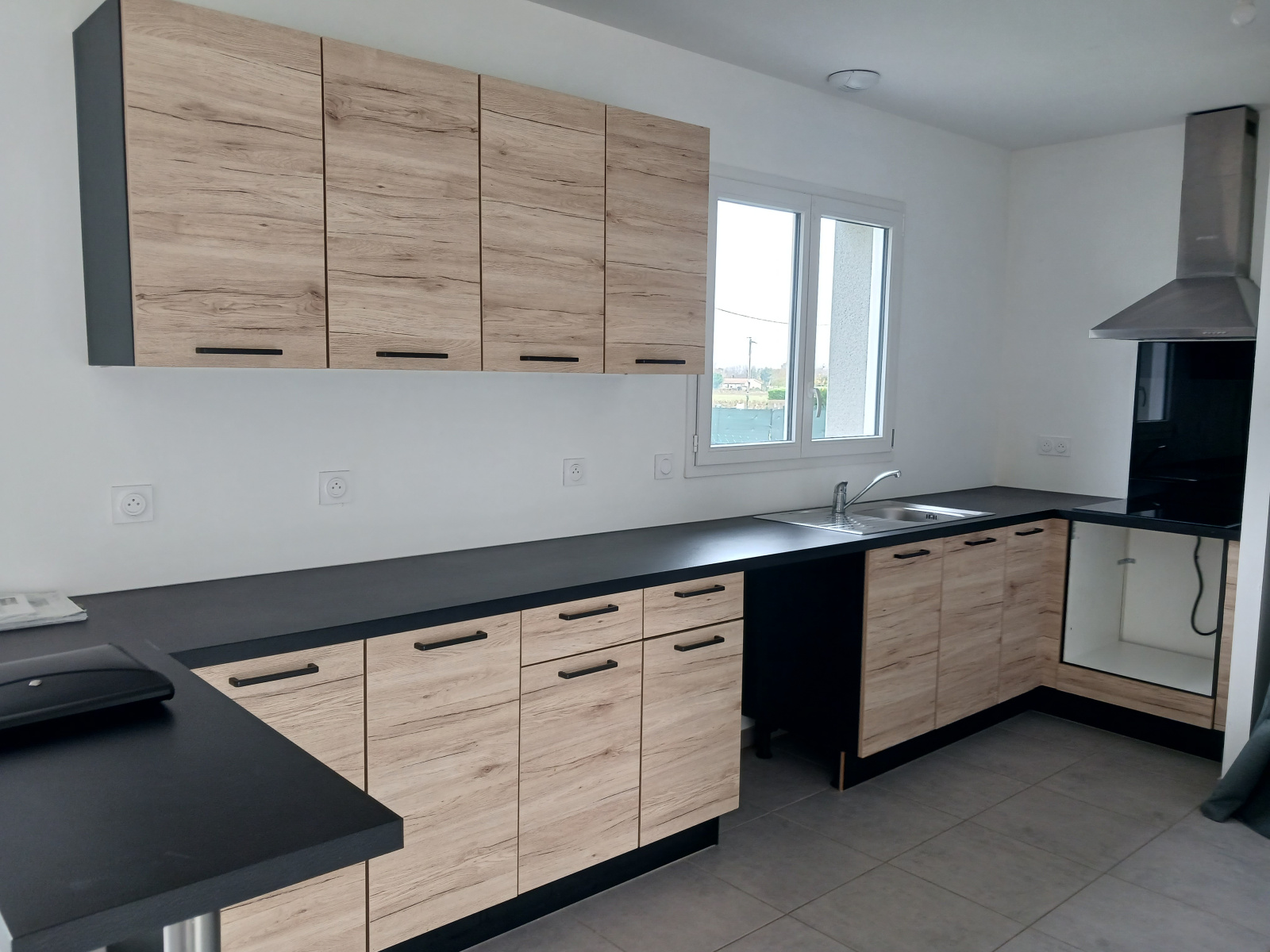 Agréable maison T4 de plain pied à Castets et Castillon, composée d'une pièce de vie ouverte sur le coin cuisine qui est équipée de placards, plaques et hotte, accès direct au garage. Le coin nuit se compose de 3 chambres dont 2 avec rangement, un wc séparé, une salle d'eau avec double vasque et un deuxième wc.