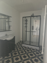 Appartement T3bis à Caudrot, situé en rdc, ce vaste appartement ce compose en rdc d'un wc, une pièce de vie avec son coin cuisine avec placards, hotte et plaques, à l'étage; deux chambres, un bureau, une salle d'eau avec 2ème wc.