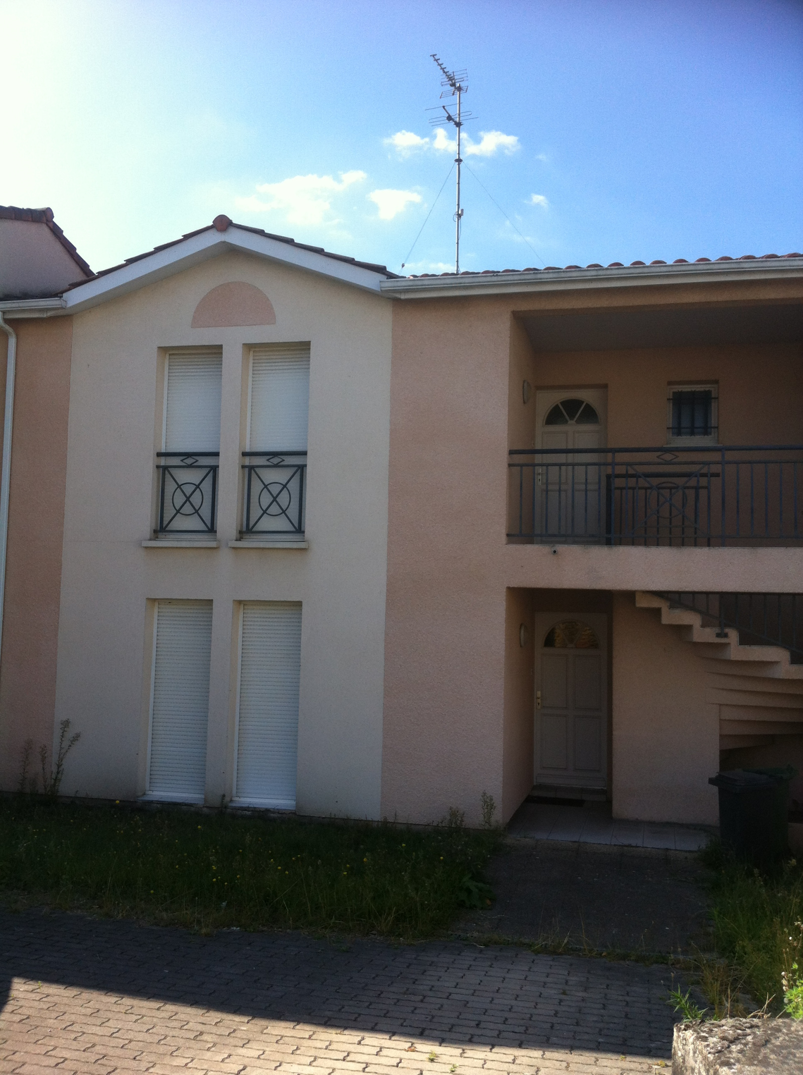 BRUGES à seulement 5 minutes du centre ville 21 Chemin de la Hutte, appartement de type 3 de 60 m² situé au rez de chaussée comprenant une entrée avec placard, un salon séjour luminéux de 23 m² environ, un coin cuisine non équipée de 7 m², un cellier, deux chambres de 9 et 10 m² avec placards, une salle de bains de 3 m² avec baignoire et vasque. WC séparé. Jardin clos avec terrasse.