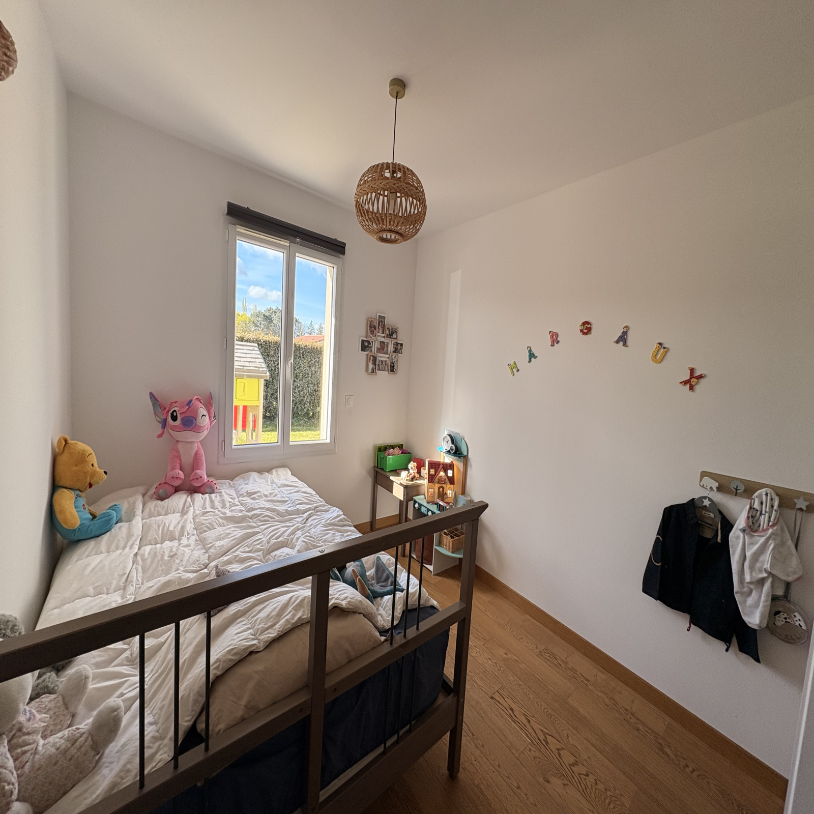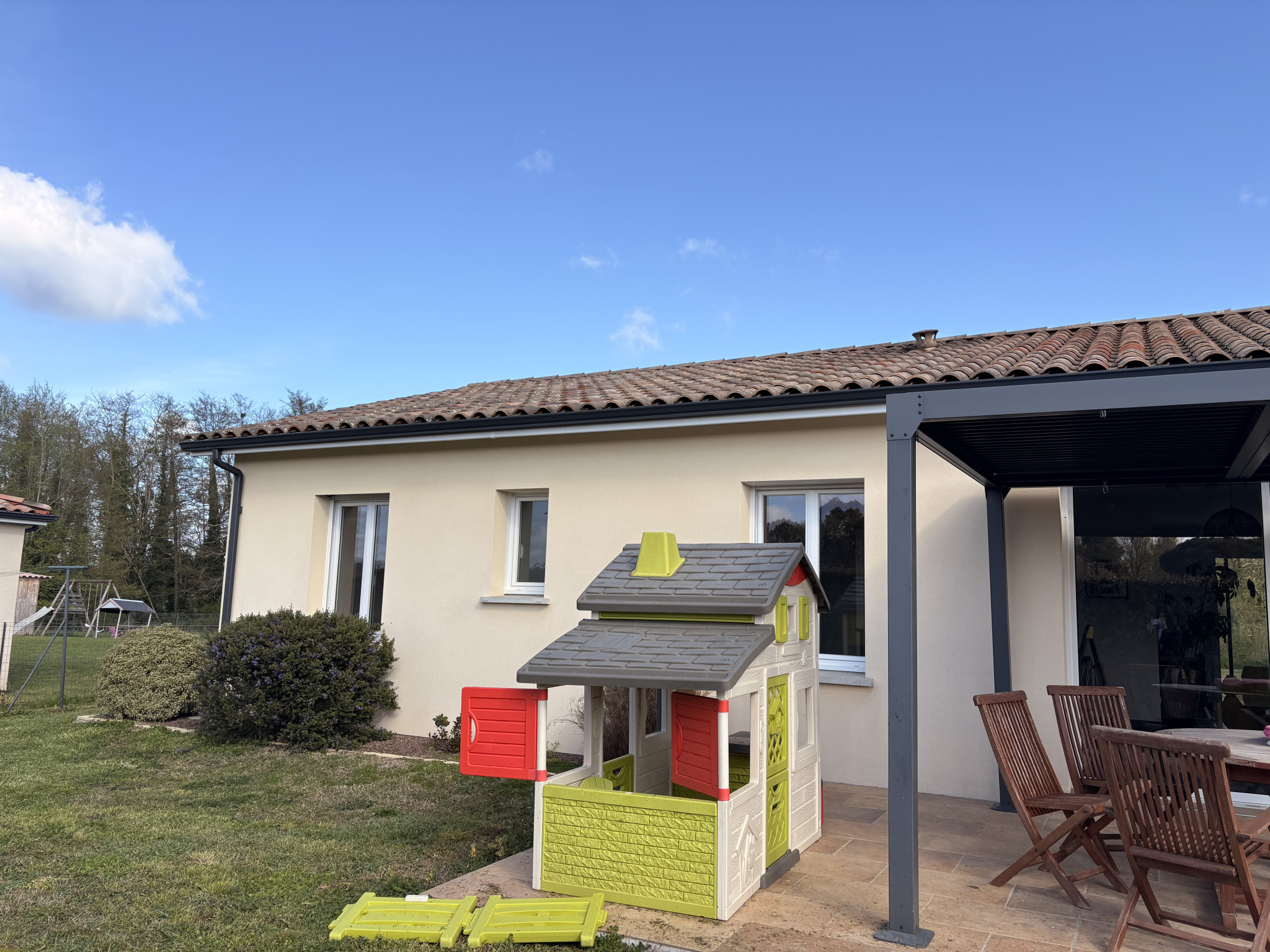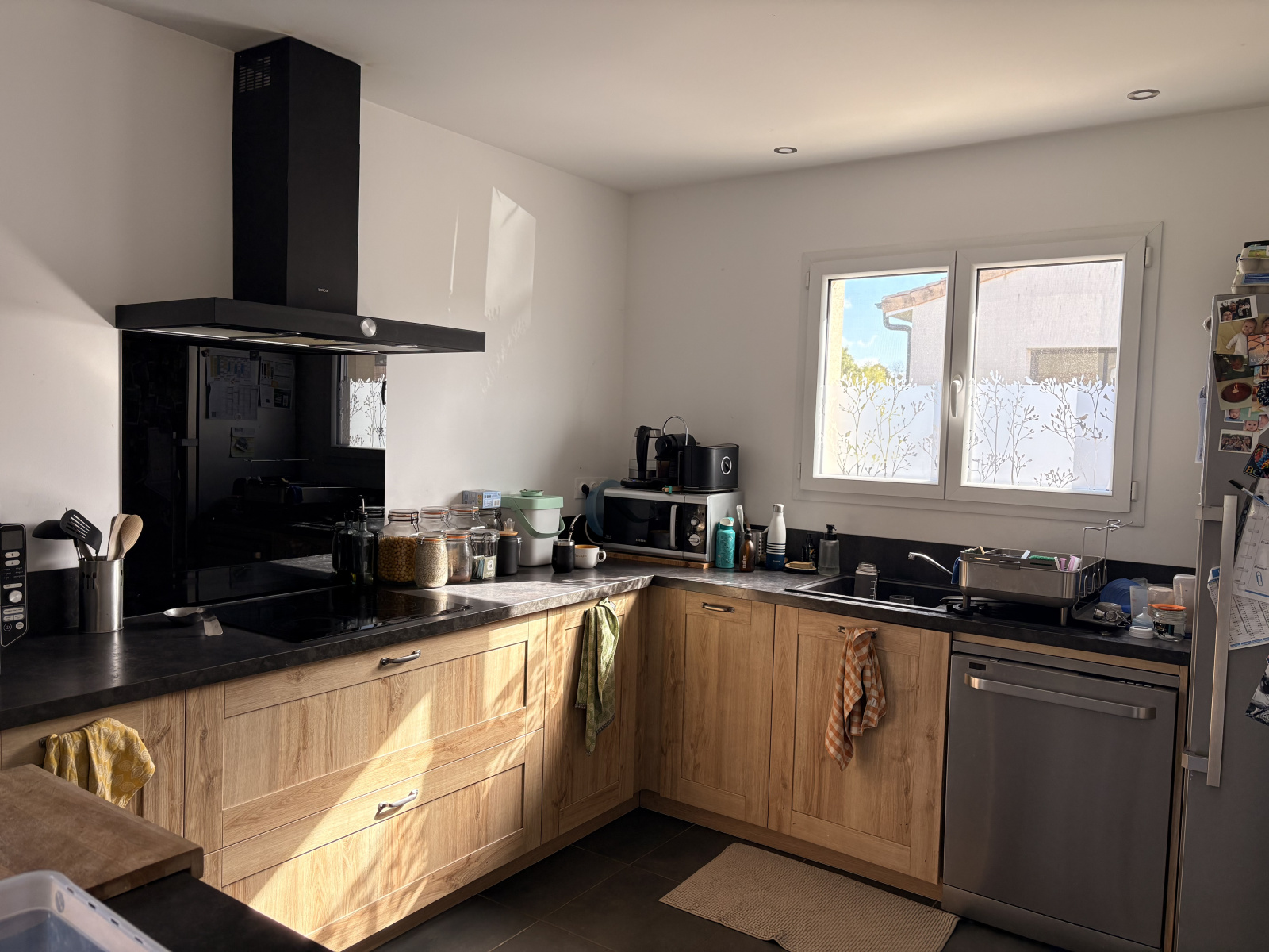 Dans un lotissment calme et agréable, maison T5 de plain pied, achevée en 2020, elle se compose d'une entrée avec placard, salon/séjour ouvert sur le coin cuisine avec placards, hotte, plaques, lave vaisselle et four, cellier, le coin nuit se compose de 4 chambres; 3 dont deux avec placard, et une suite parentale avec placard et sa salle d'eau avec wc, une salle de bain, un deuxième wc. Garage attenant, jardin clos, deux terrasses, portail électrique.