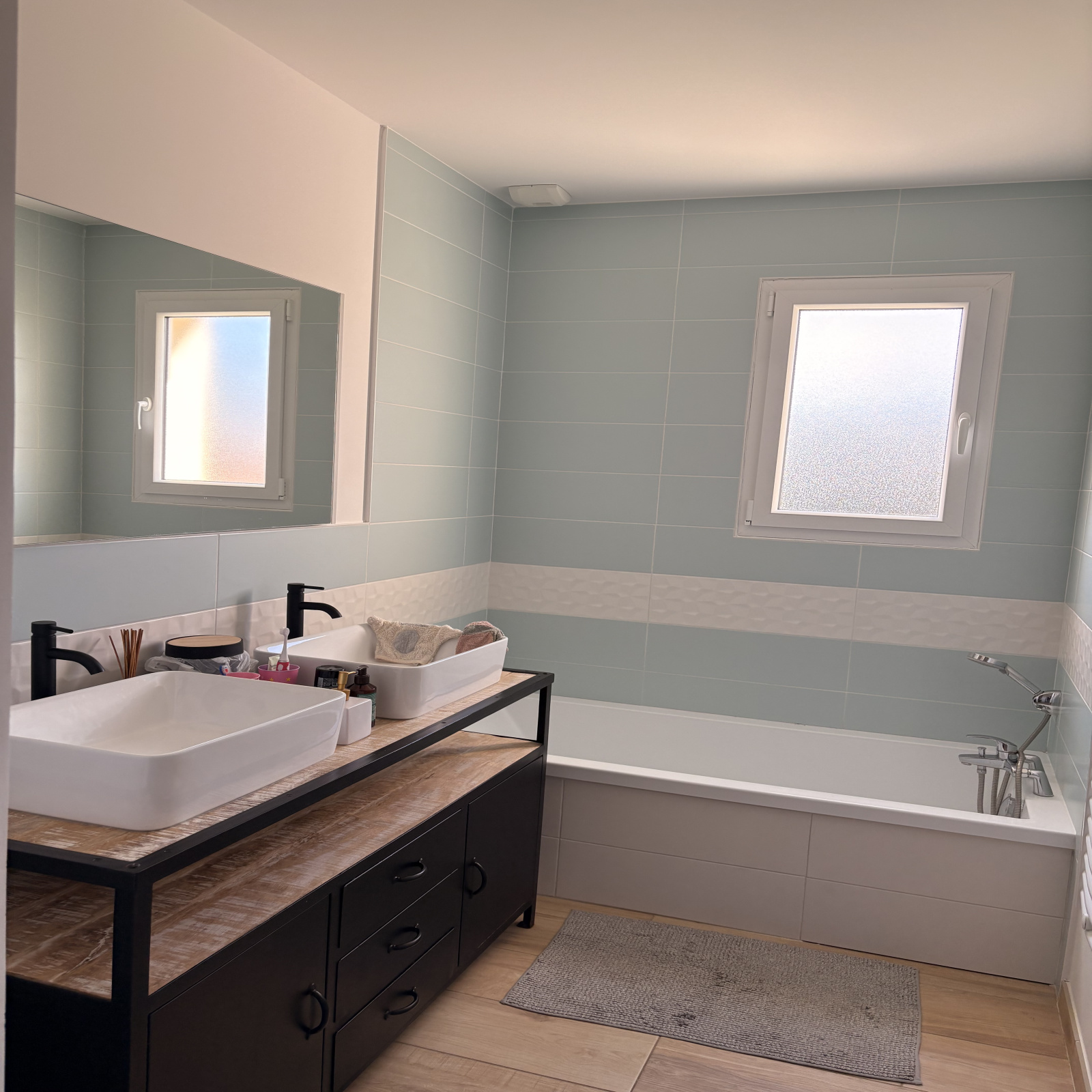 Maison lumineuse, climatisation dans le séjour, chauffage au sol par PAC, belles prestations.