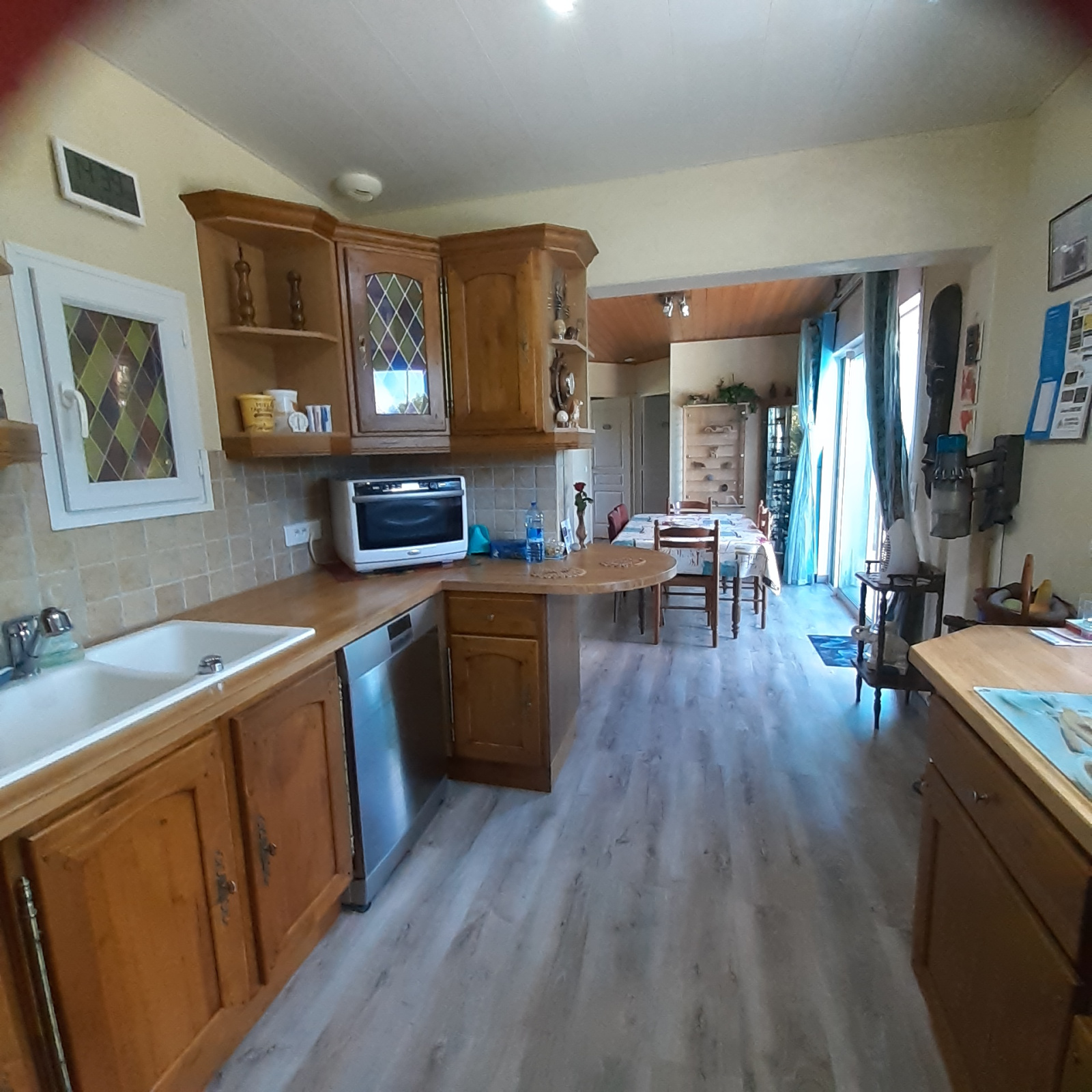 Dans un village du Sud Gironde: cette maison se compose en rez de jardin d'une entrée, d'un séjour, une cuisine équipée, 2 chambres, salle d'eau, wc, cellier un premier garage double et en sous-sol un vaste garage avec atelier et un studio avec salle d'eau et wc. Ascenseur, Climatisation, double vitrage, terrasses ... Environnement très agréable un très beau jardin arboré et clos 3446 m² avec possibilité de division. Village avec une superette accessible à pied. Honoraires charges vendeurs ref MANDAT 4494