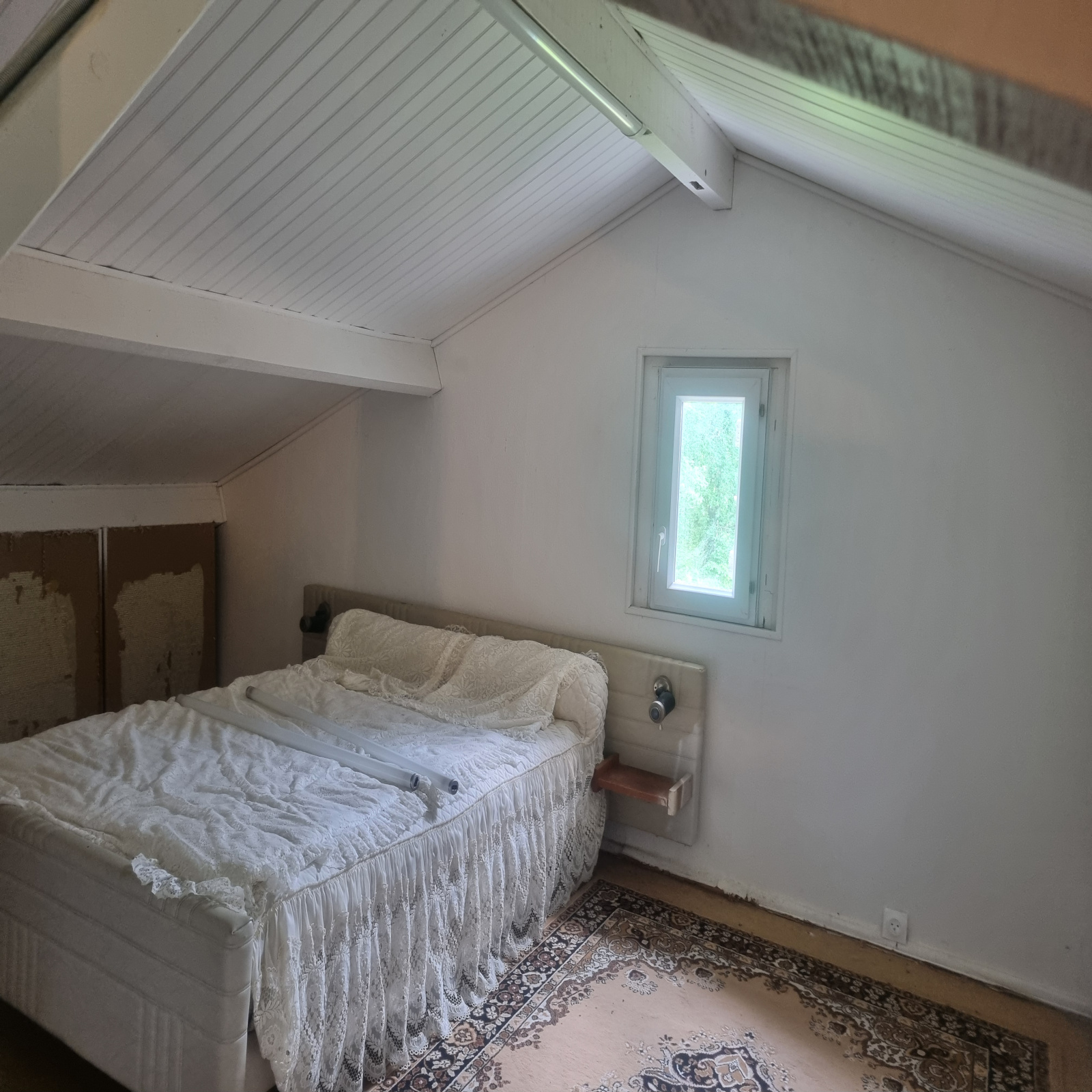 A l'étage: 2 chambres, une salle de bain, wc, un salon séjour, une entrée, à rafraichir.