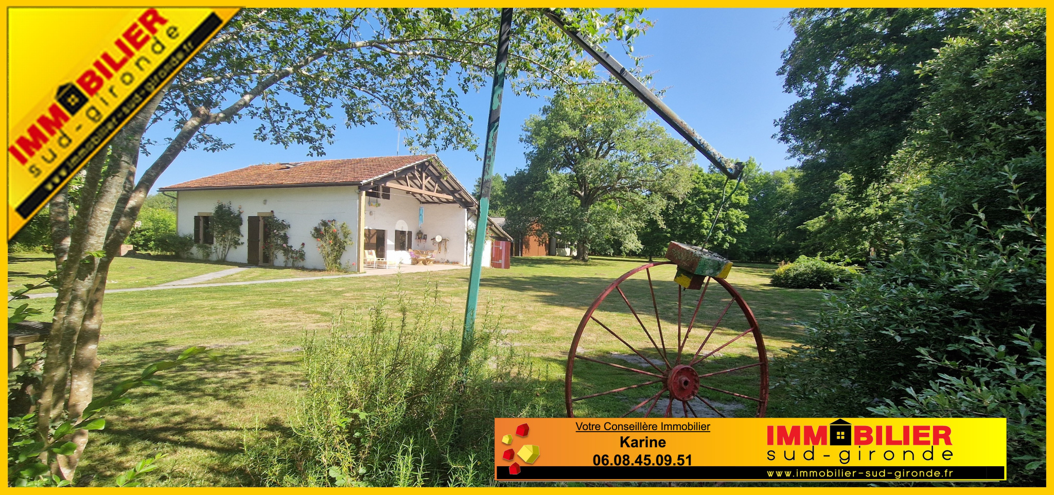 A 10 min de BAZAS, nichée au coeur d'un airial verdoyant, à la lisière de forêt et sans vis à vis, je vous invite à découvrir cette séduisante Landaise dans un environnement boisé et apaisant, ainsi que 3 spacieuses dépendances avec un fort potentiel.