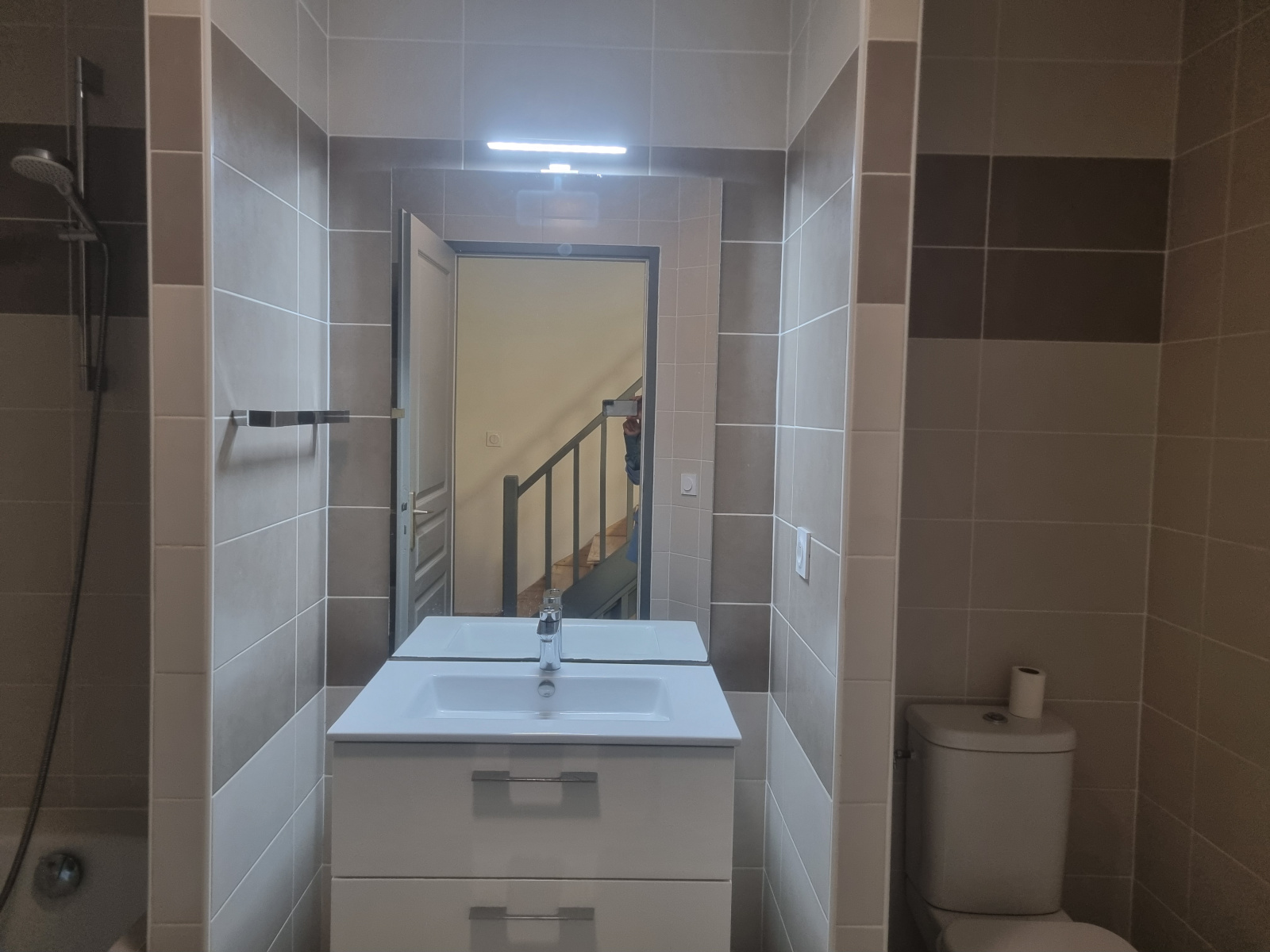 1er étage: un palier, une chambre, une salle de bain avec wc.
