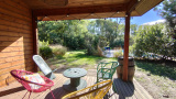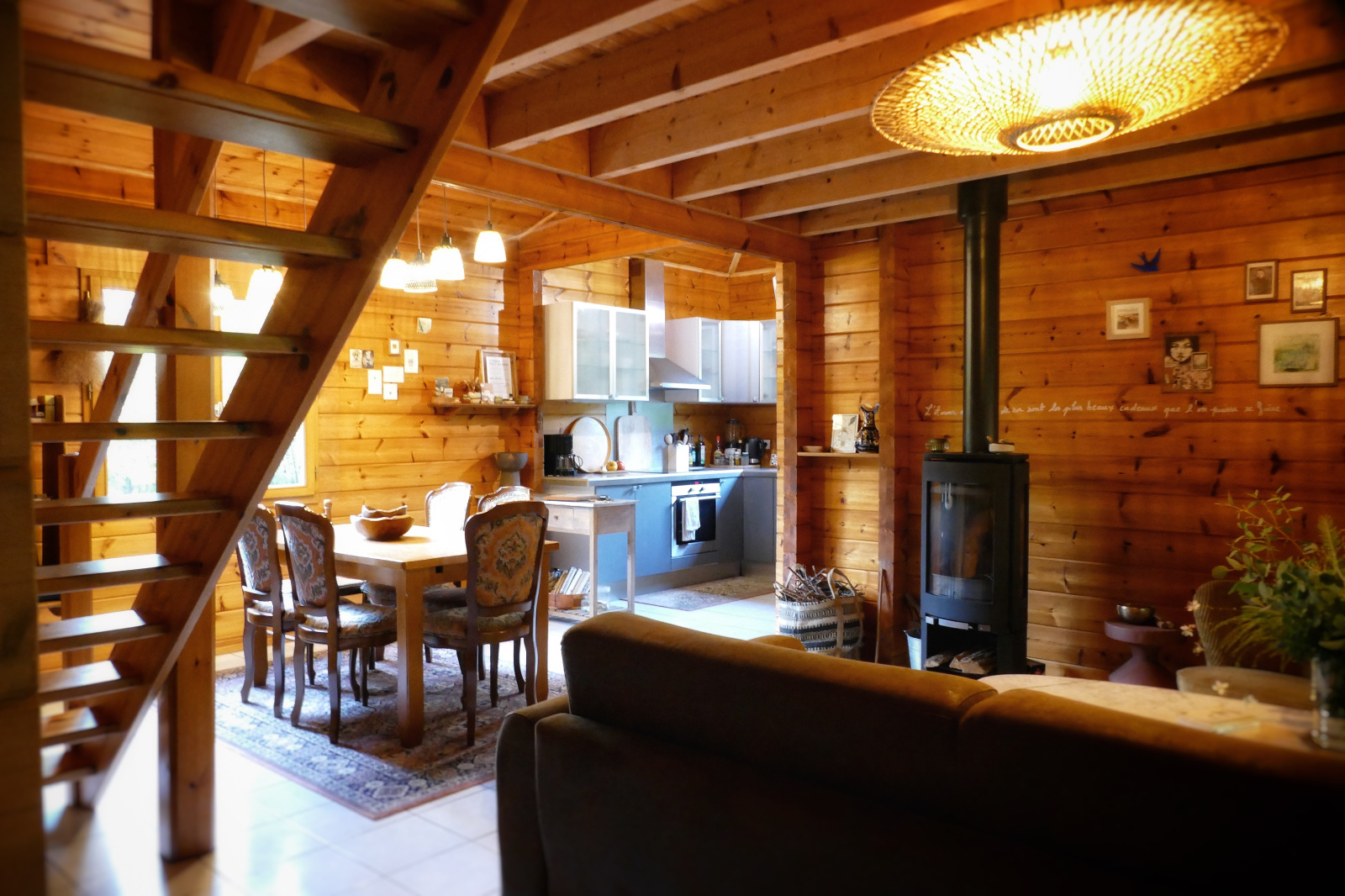Dans un village très proche d'Hostens découvrez cette maison très chaleureuse en construction bois de 2004: Elle se compose en rdc d'une entrée, cuisine équipée ouverte donnant sur le salon avec un poêle à bois, un dégagement desservant deux chambres, un salle d'eau et des toilettes. A l'étage: une mezzanine ainsi qu'une grande chambre. Terrasse couverte pour des soirées conviviales. Une jolie piscine avec terrasses autour, cabanons de jardin. Le tout dans un merveilleux jardin clos arboré et intime d'environ 2001 m²