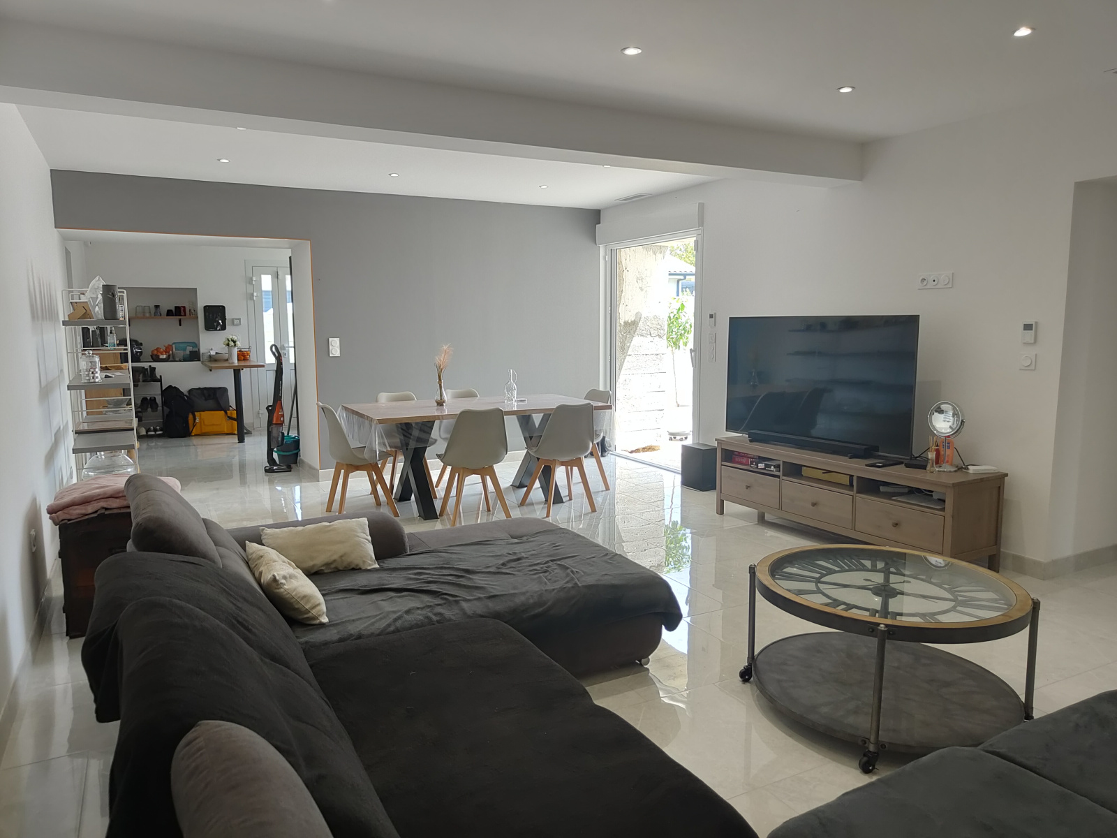 Proche de Langon, Maison en pierre de 170 m² entièrement rénovée. La maison se compose en rez-de-chaussée d'une jolie cuisine équipée indépendante, d'un salon-salle à manger, d'une suite parentale avec salle d'eau, wc et dressing, une autre chambre, une salle de bain, des toilettes et une vaste buanderie avec escalier desservant l'étage avec 2 chambres sous comble. Un garage attenant de 28 m² avec possibilité de faire une suite parentale dans le grenier. Travaux récents 2021: Toiture, Double vitrage, isolation, pompe à chaleur avec gainable, reste à finir les façades. Agréable maison familiale très fonctionnelle avec terrasse et jardin clos dans un quartier calme. Honoraires charge vendeurs. Mandat 4669