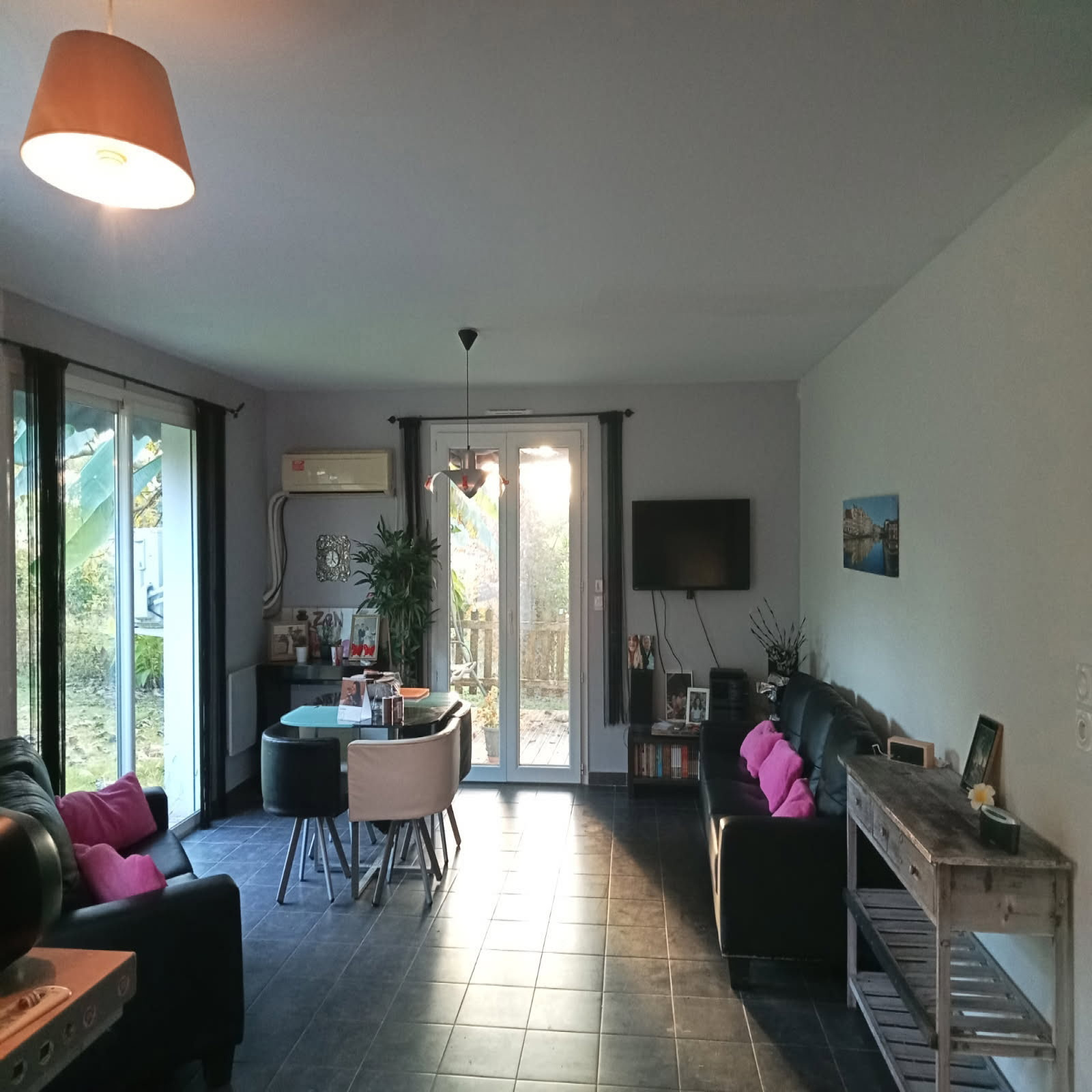 Aux portes de Langon, en bout d'impasse au calme sur un terrain arboré, charmant pavillon contemporain composé d'un salon séjour avec cuisine Américaine, 3 chambres, sde, wc, et garage moto. Une grande terrasse bien exposée vient compléter cet ensemble sur un terrain d'environ 1083 m² clos. Honoraire charge vendeur. Ref 4763