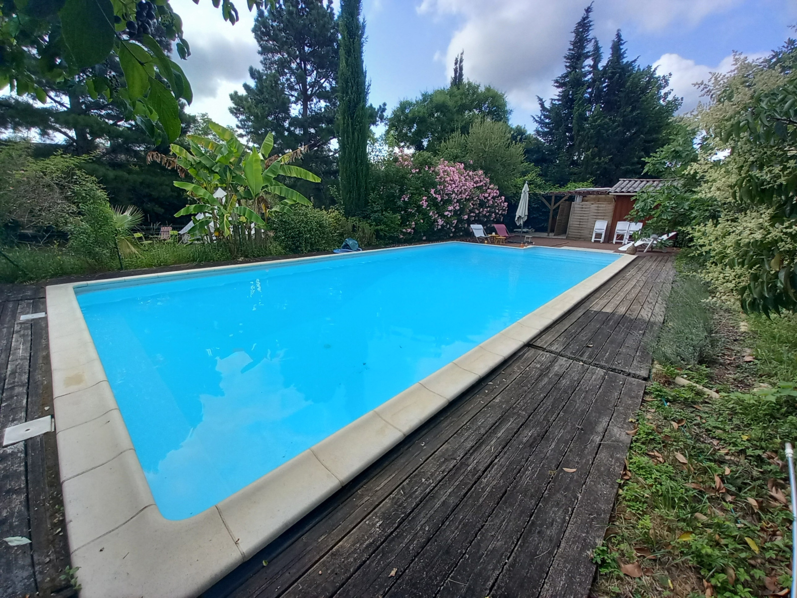 Pour profiter plainement de ce bien, vous disposez de 2 terrasses une au Sud et une au Nord (afin d'optimiser l'utilisation des espaces extérieurs) et bien sûr sa belle piscine agrémentée d'un bord de plage en latte de bois avec un espace aménagée d'une cabine, un cabinet toilette et une douche, le tout entièrement clôturé pour une sécurité maximale, le tout sur une parcelle de 4156 m2.