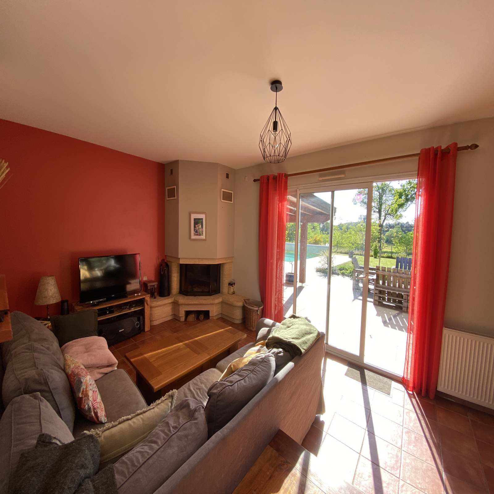 Maison lumineuse, terrasse en partie couverte et piscine orientée ouest sans vis à vis.