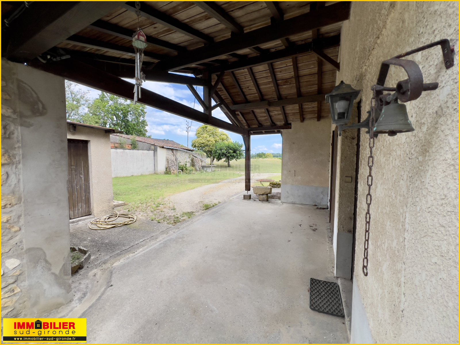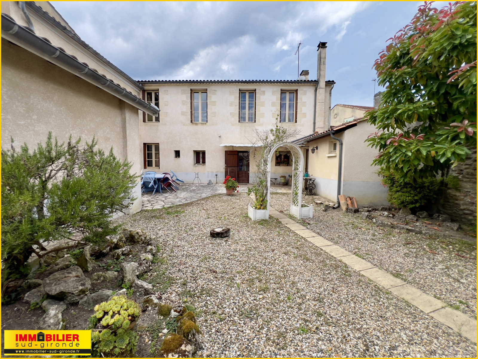 A deux pas du centre bourg de la commune, de la place du marché, de l'école maternelle et de l'école primaire, venez découvrir cette belle maison en pierre de type Girondine élevée sur deux niveaux avec grand terrain de plus de 1000m².