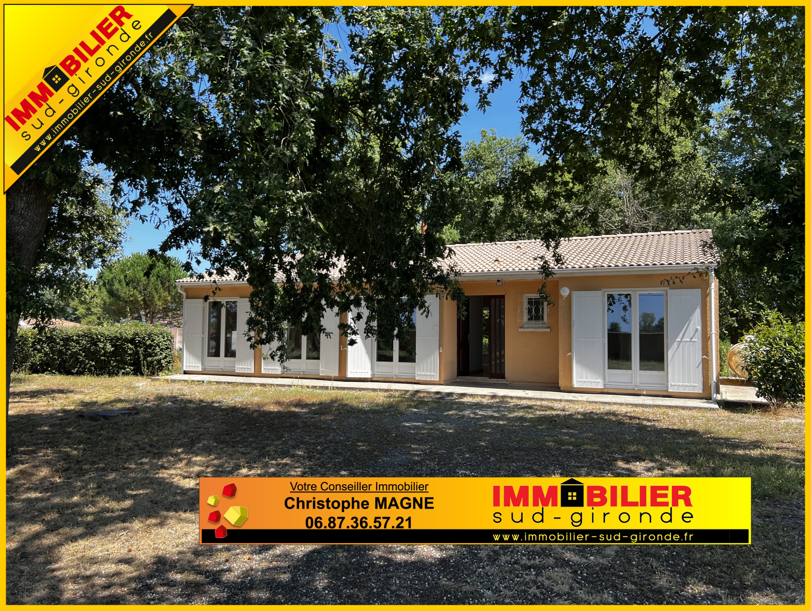 EXCLUSIVITE, à moins de 5 mn du centre ville, cette maison de plain pied se compose d'une entrée, salon séjour double, cuisine séparée et coin repas, 3 chambres dont une avec cabinet de toilettes, sde, toilettes, cellier, dressing, et garage attenant. Magnifique terrain arboré de chênes d'environ 5046 m². Honoraires charge vendeurs. Ref 4465