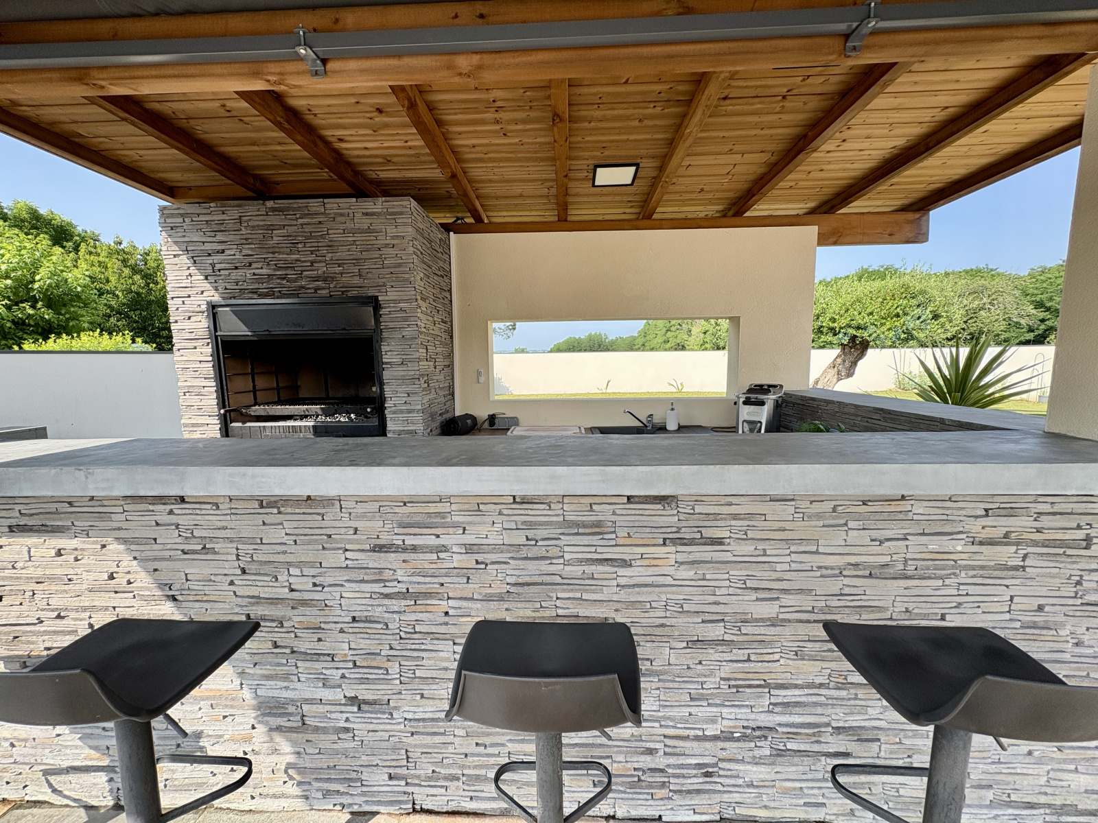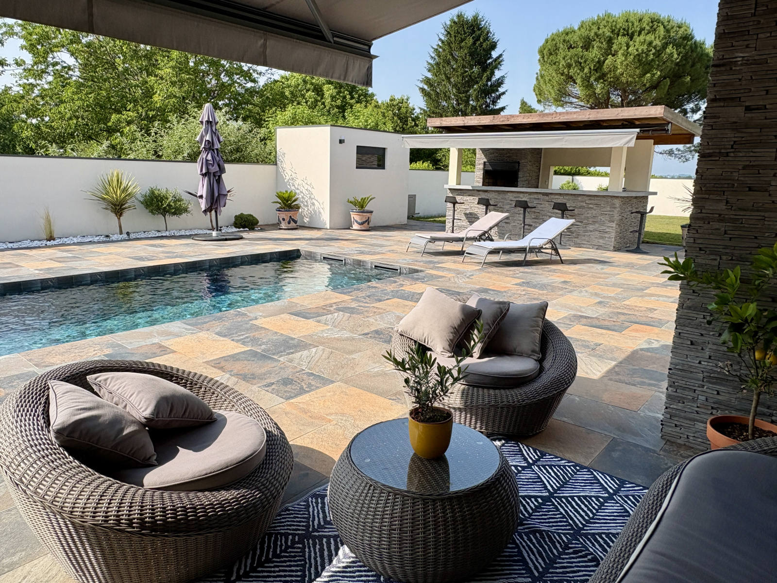 A l'extérieur, allée goudronnée, belle terrasse avec piscine, aucun vis à vis, pool house et cuisine d'été.