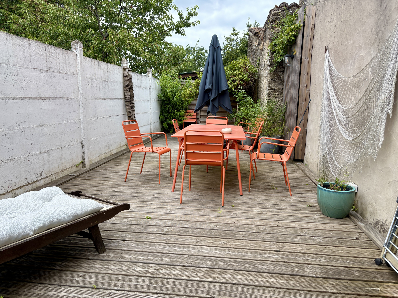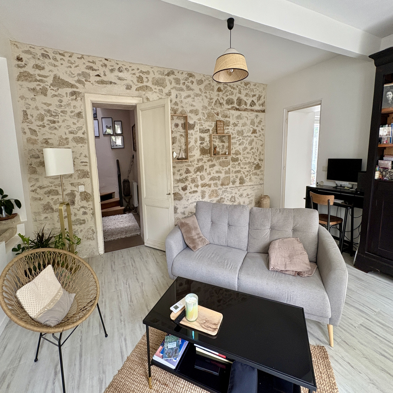 En rez de chaussée, une jolie cuisine dinatoire moderne et équipée, un séjour climatisé, une salle d'eau et une agréable véranda qui dessert la cour intimiste sur l'arrière de la maison.