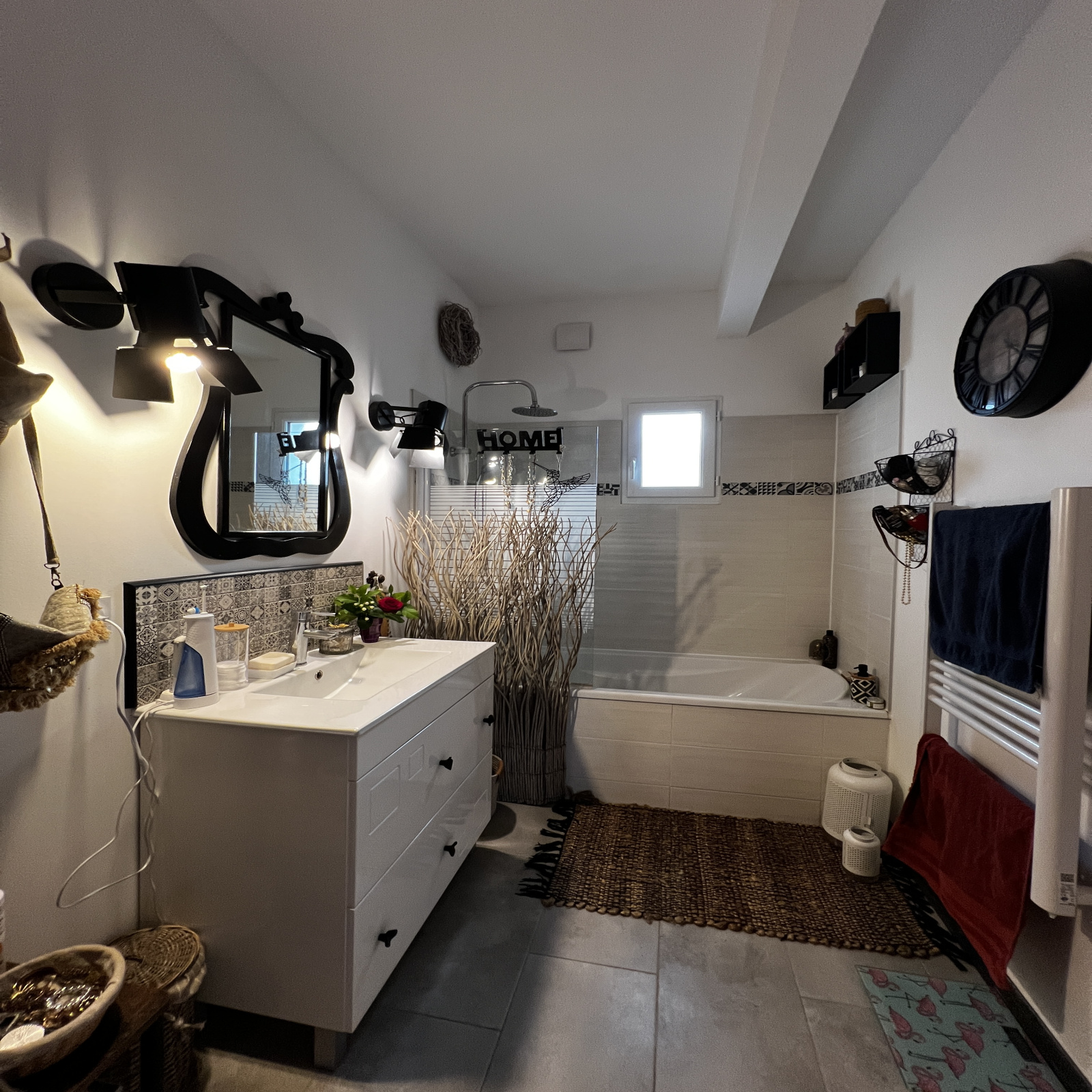 Moins de 10 mn de Langon sur l'axe Langon / Villandraut, dans un quartier calme et agréable laissez vous séduire par cette maison contemporaine mitoyenne sur un côté mais sans vis à vis, à la décoration soignée. Une belle pièce à vivre avec suisine Américaine équipée, un salon séjour avec poêle à bois et climatisation, un cellier buanderie aménagé, 3 chambres, une sdb et un wc. Terrasse avec pool house et piscine. Un grand garage avec porte motorisée vient compléter cet ensemble rare sur le secteur. Honoraires charge vendeurs. Ref 4736