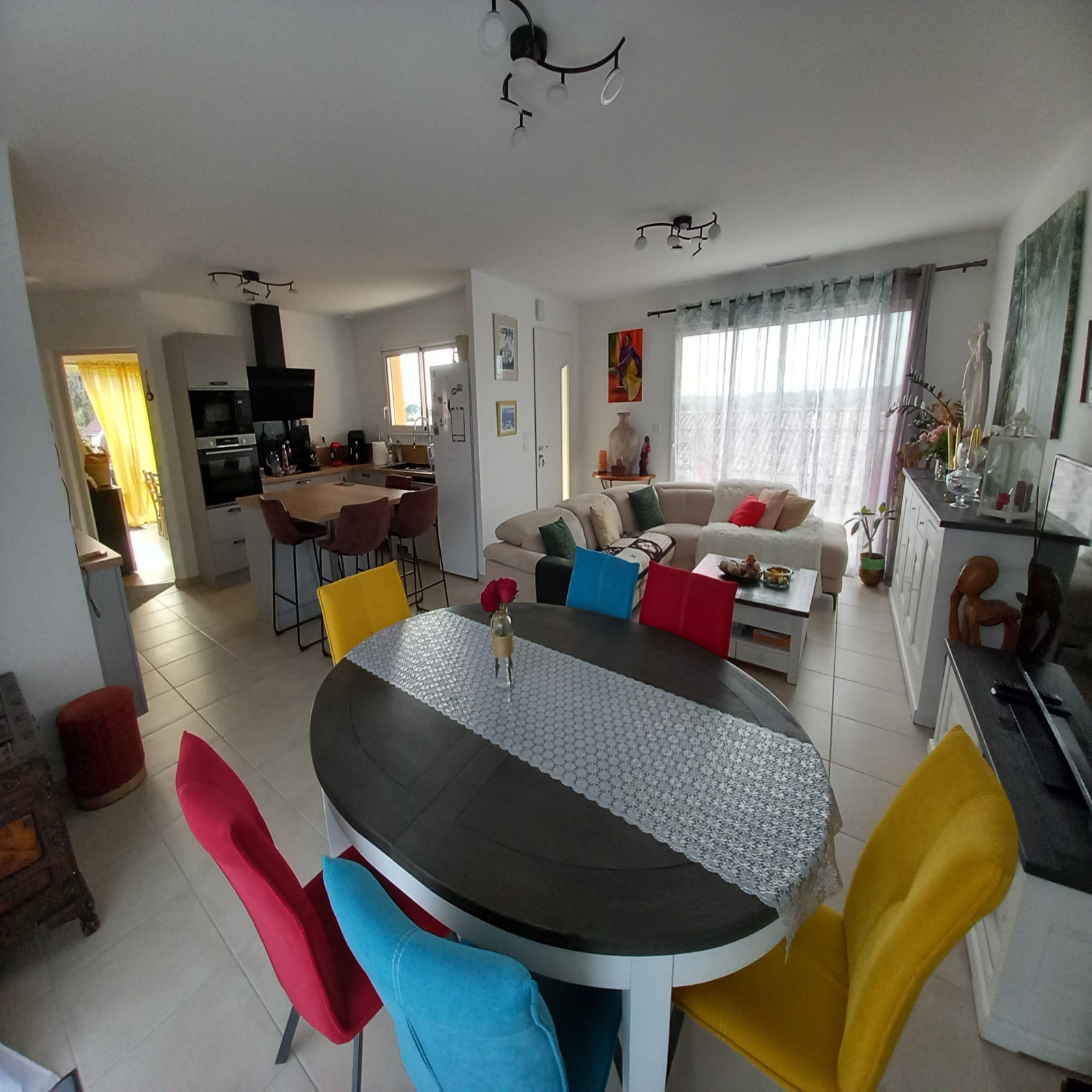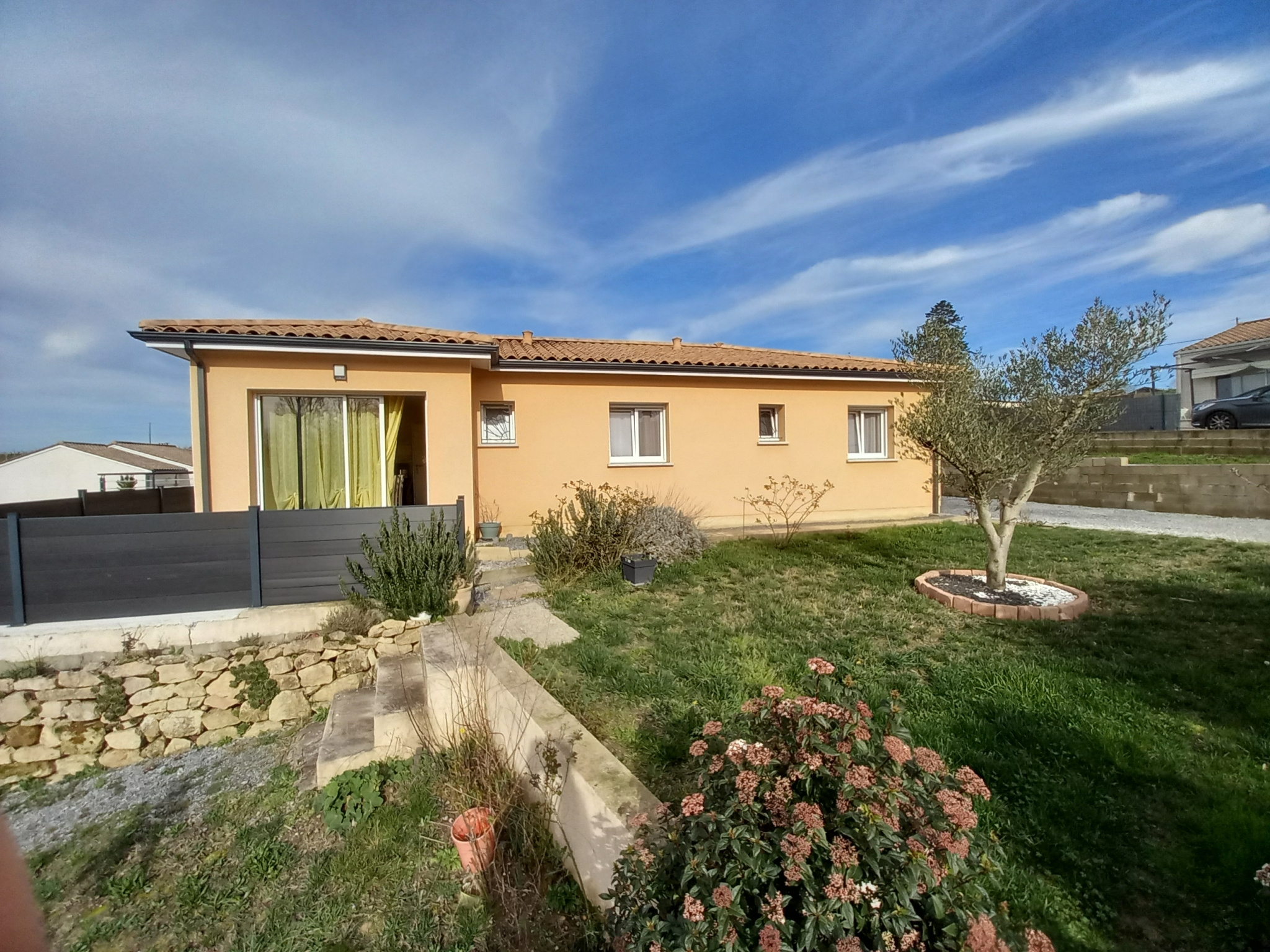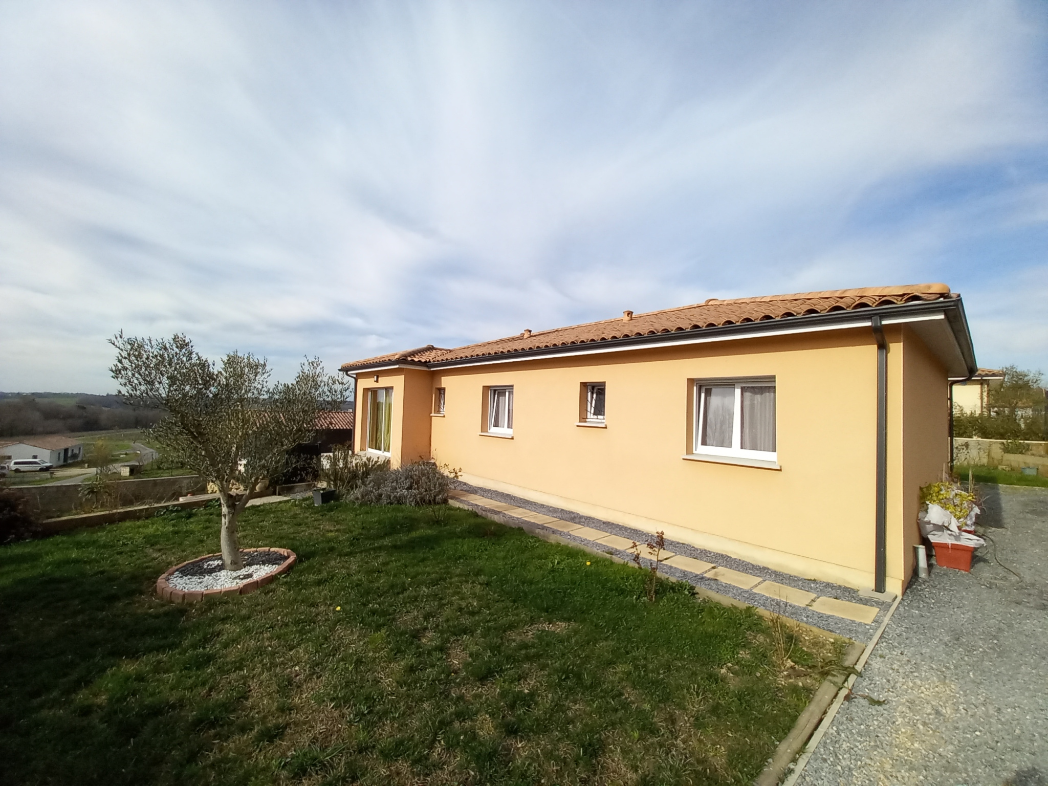 Trés lumineuse, elle se compose d'une cuisine ouverte, équipée, sur la pièce de vie, un cellier, 3 Chambres (dont une suite parentale avec son dressing et sa salle d'au), un WC, une Salle de Bain et le petit plus une cuisine d'été donnant sur la terrasse, à l'avant de la maison.