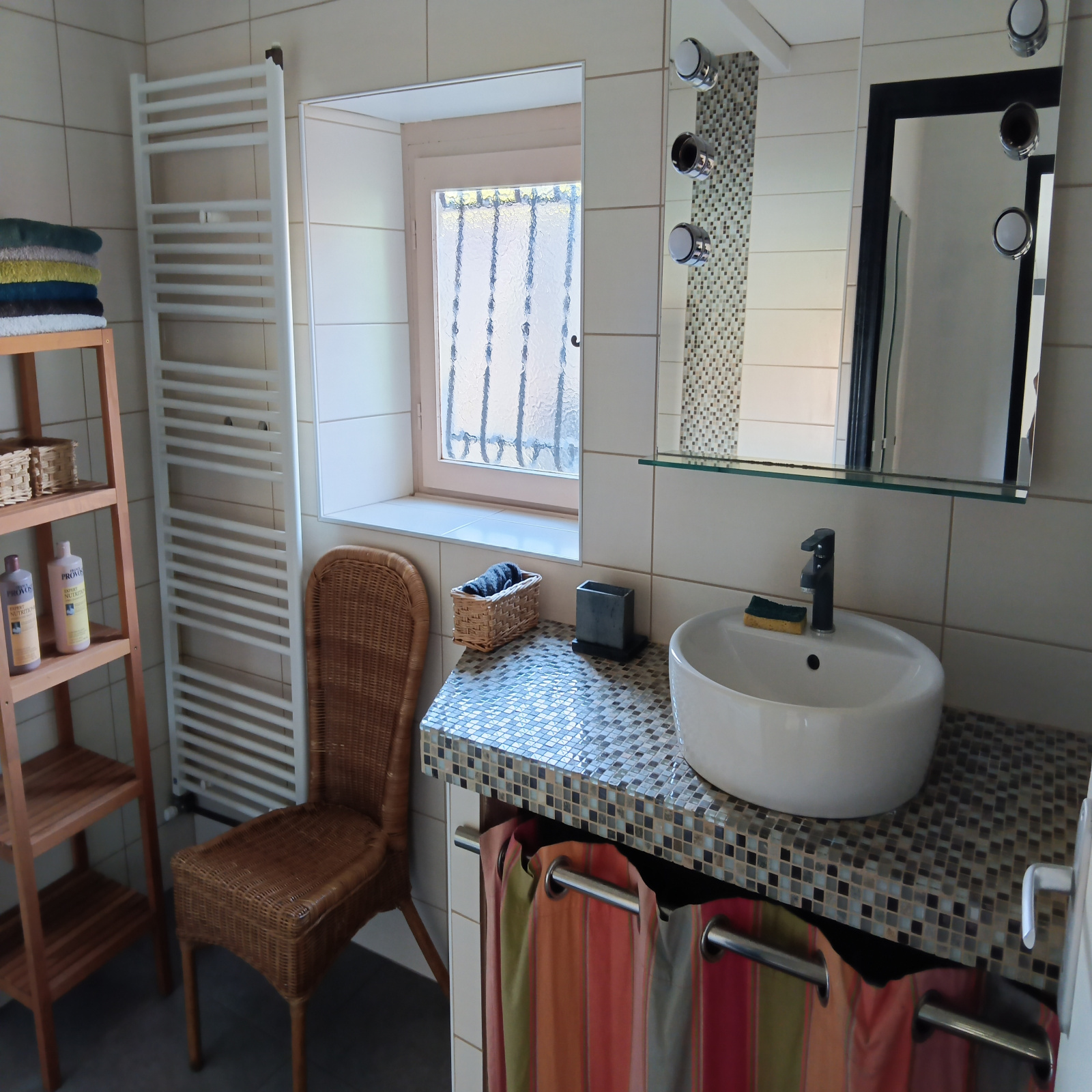 une chambre, salle de bains, wc et buanderie complètent ce niveau.