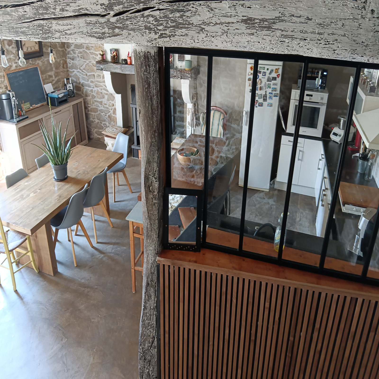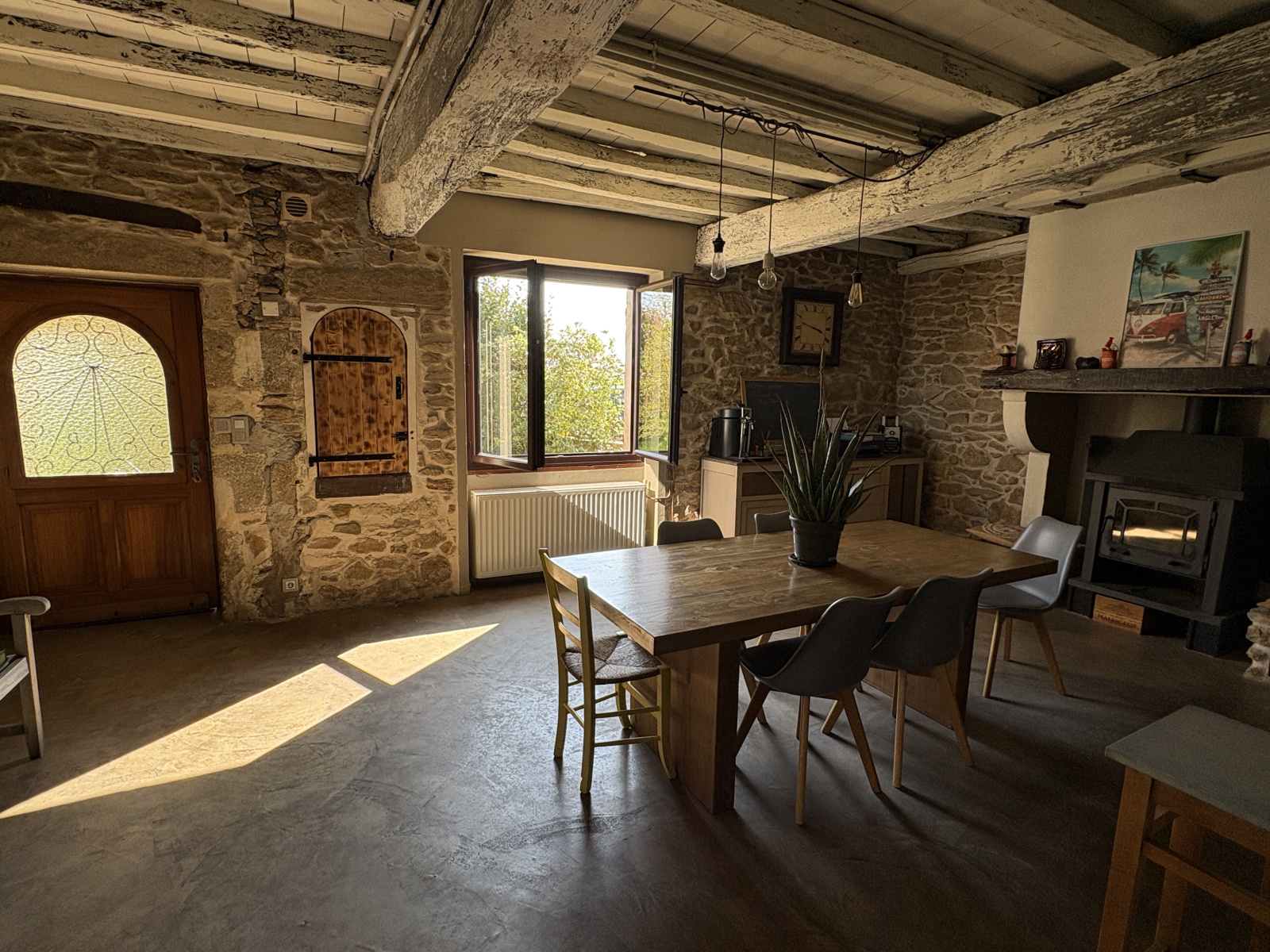 En rez de chaussée, trés agréable cuisine ouverte sur salle à manger de 44m², un salon, chacune de ces pièces est équipée d'un poêle à bois.