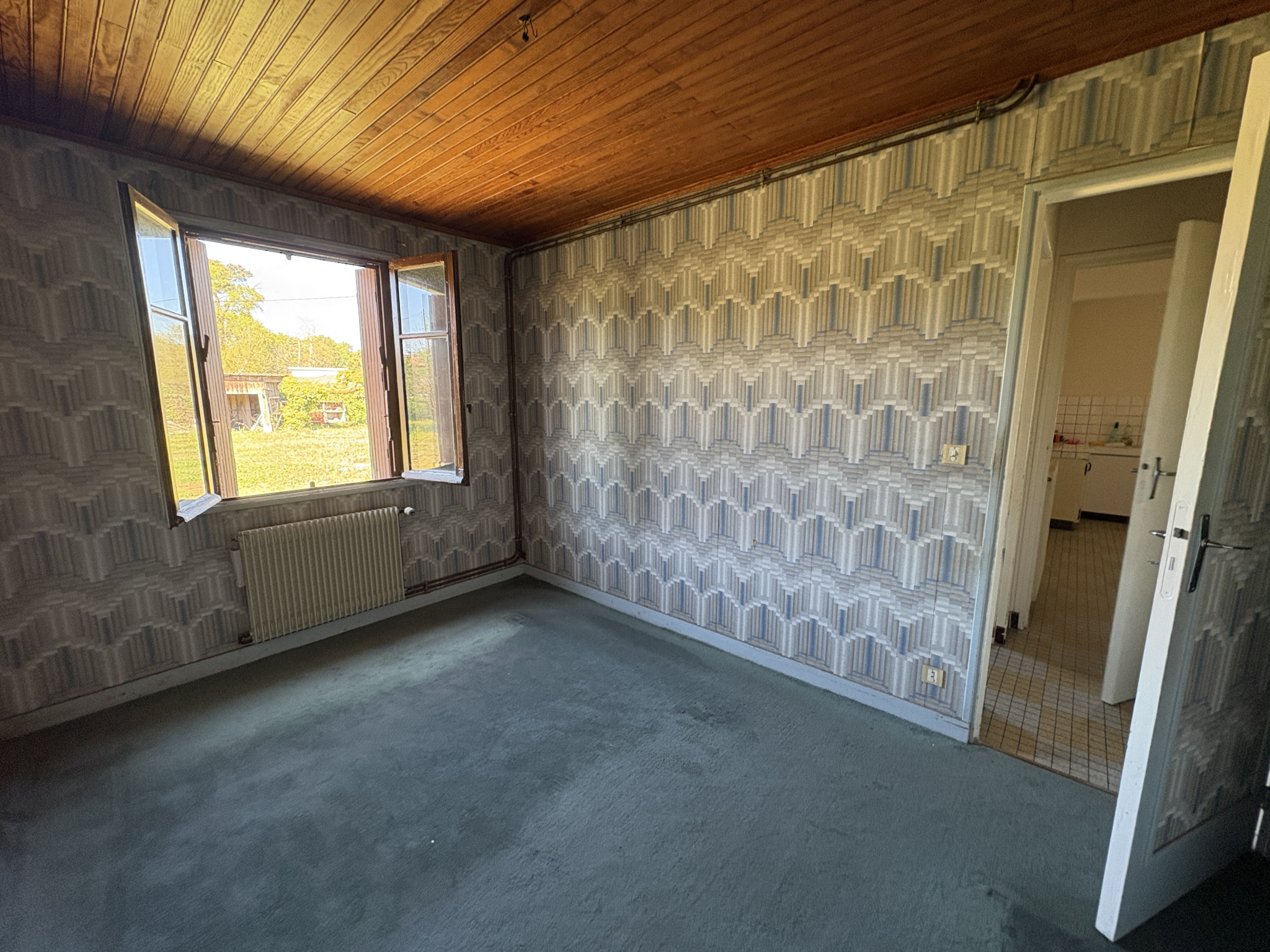 sur une jolie parcelle de 1400m² en zone constructible. Maison d'environ 90m² habitables composée d'une grande cuisine, un salon, 3 chambres, salle d'eau et wc séparés.