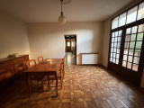 Elle est composée en rdc: de 2 entrées, un salon (cheminée en pierre et joli parquet), une salle à manger, une cuisine équipée, wc, salle de bain, cellier, patio à l'étage: palier desservant 3 grandes chambres. Attenant un grand garage de 100m² Toiture du garage à rénover ou possibilité de création d'un petit jardin. Un très belle cave voutée, un puit, une 2ème maison de 4 pièces à rénovér. Ce bien donne sur deux rues, il est à proximité de toutes les commoditées à pied. Un beau projet en perspective !