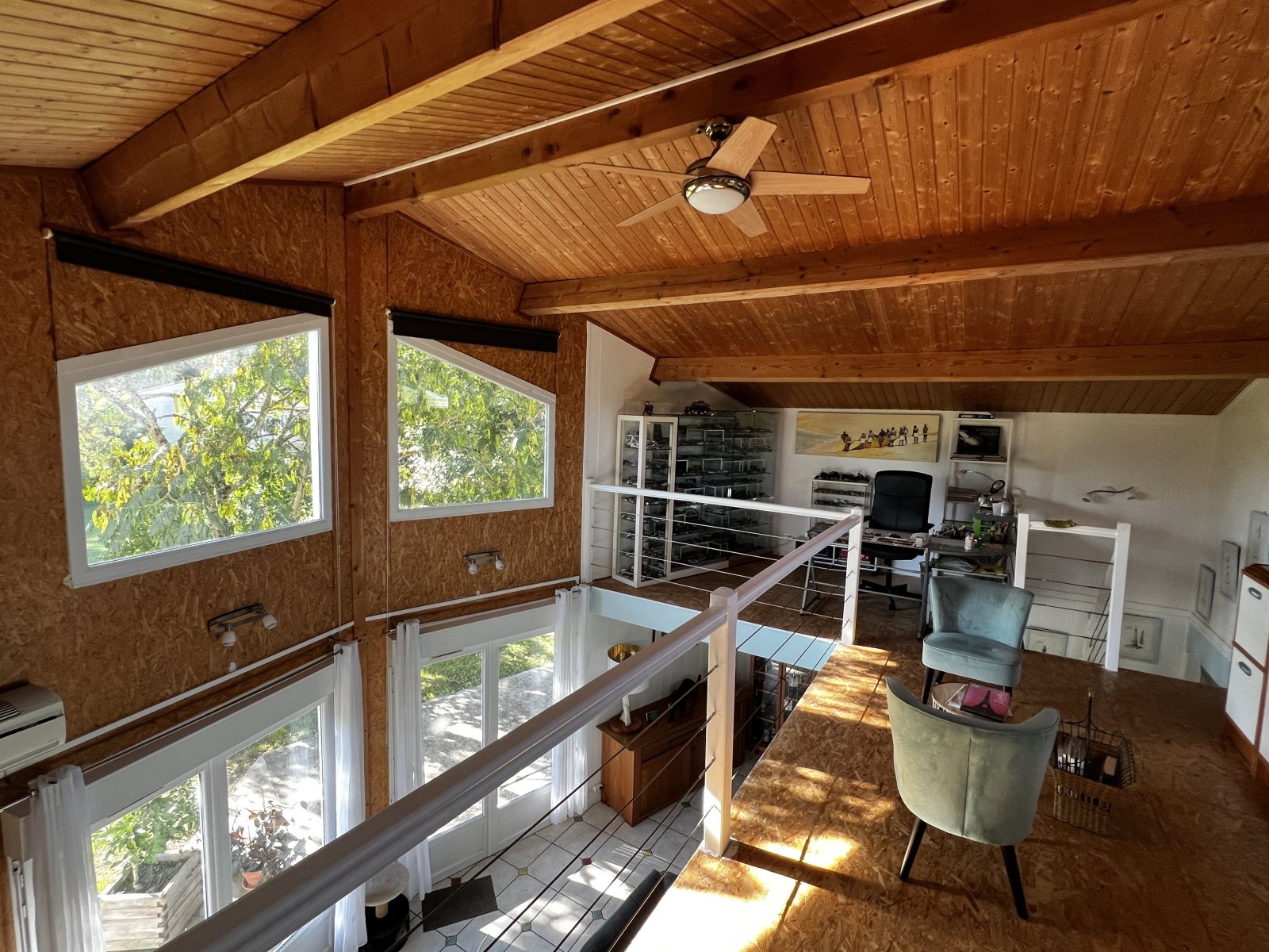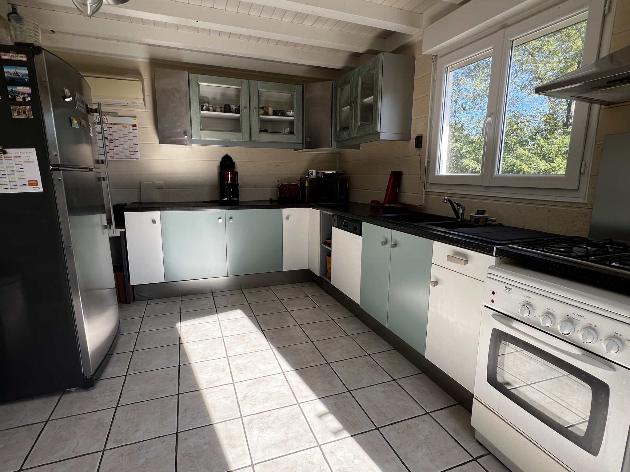 Sur les coteaux, dans un quartier calme, belle maison ossature bois élevée sur un sous-sol complet comprenant garage double, buanderie, cave à vin, remise. En rez de jardin, une entrée avec placards, salon séjour lumineux avec cheminée insert, cuisine équipée séparée, 2 chambres, une sdb, un toilettes. A l'étage, une mezzanine avec salle de jeu, et chambre ou bureau. Climatisation réversible par split dans toutes les pièces habitables. Le tout sur un terrain d'environ 3823 m². Portail électrique. Honoraires charge acquéreurs. Réf 4711