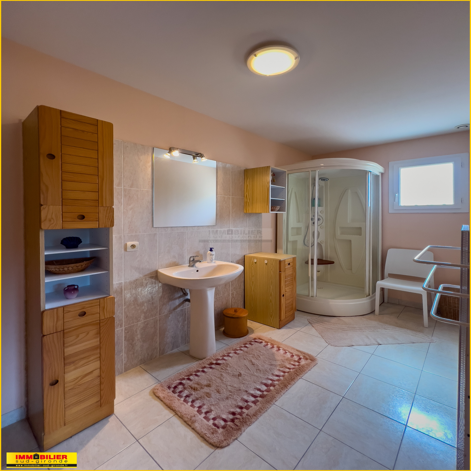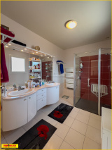 Le coin nuit se compose de deux chambres dont une grande suite parentale avec salle d'eau privative et dressing indépendant, grand cellier/buanderie de plus de 15 m² et wc indépendant avec lave mains.