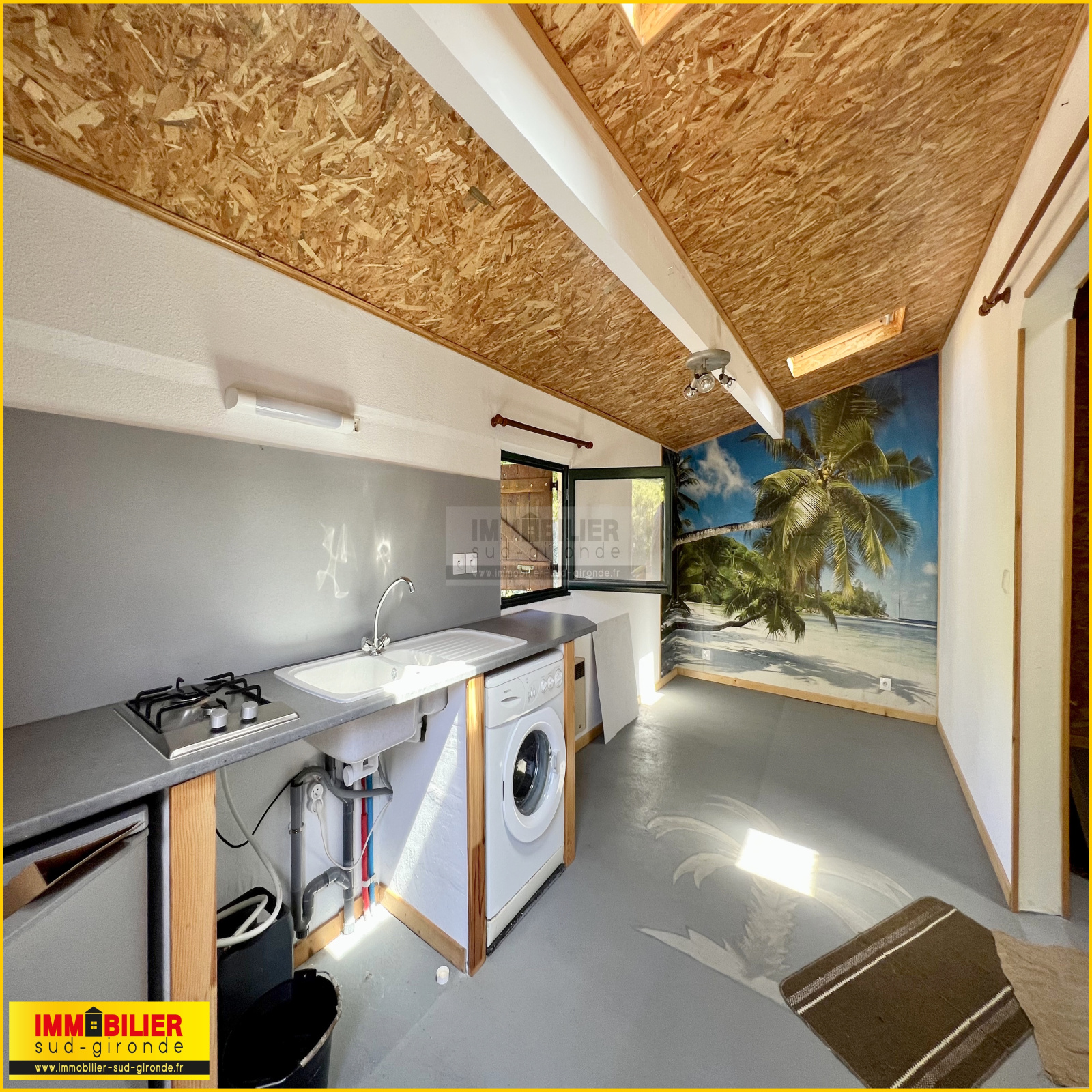 Grand double garage non attenant aménagé avec une cuisine, salle d'eau, wc, et espace mezzanine. Tout a été pensé pour un aménagement en logement indépendant.
