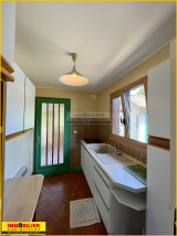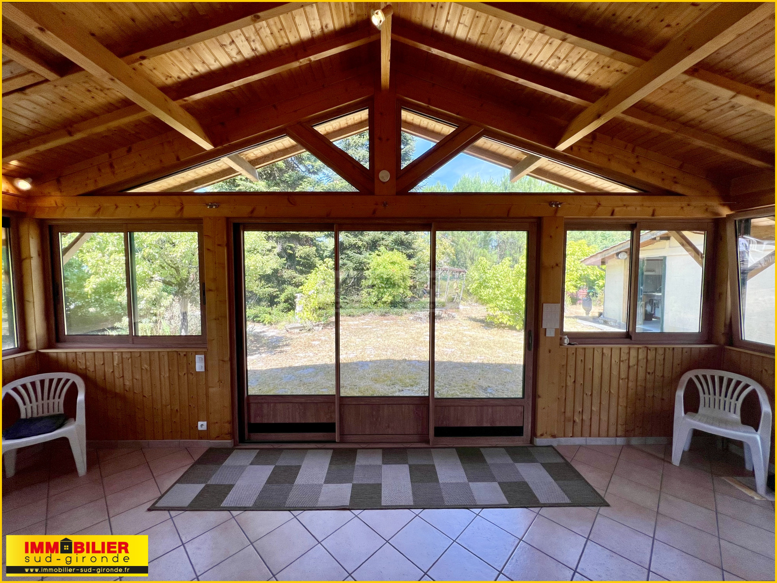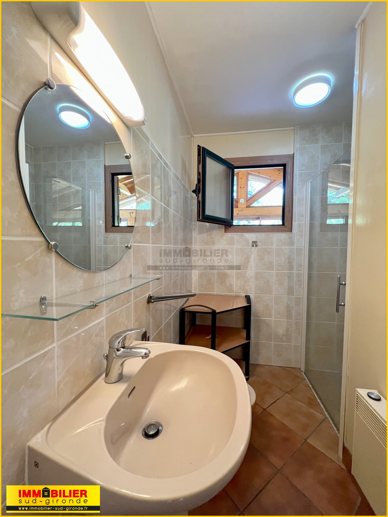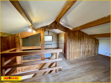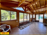 Elle se compose au rez-de-chaussée d'un salon séjour orienté sud, une cuisine séparée, un dégagement, un bureau, une salle d'eau, un wc séparé, un deuxième salon séjour en véranda ouvert sur la nature. A l'étage, une grande pièce mansardée de plus de 40 m² au sol dont 20 m² de surface habitable.