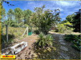 Grand terrain arboré, entièrement clos avec portail à l'entrée et portillon sur l'arrière donnant directement dans la forêt.