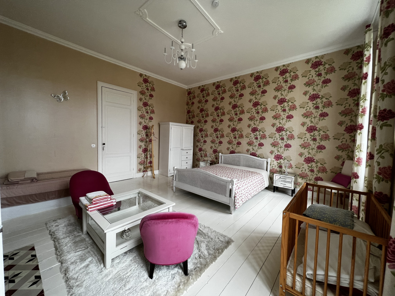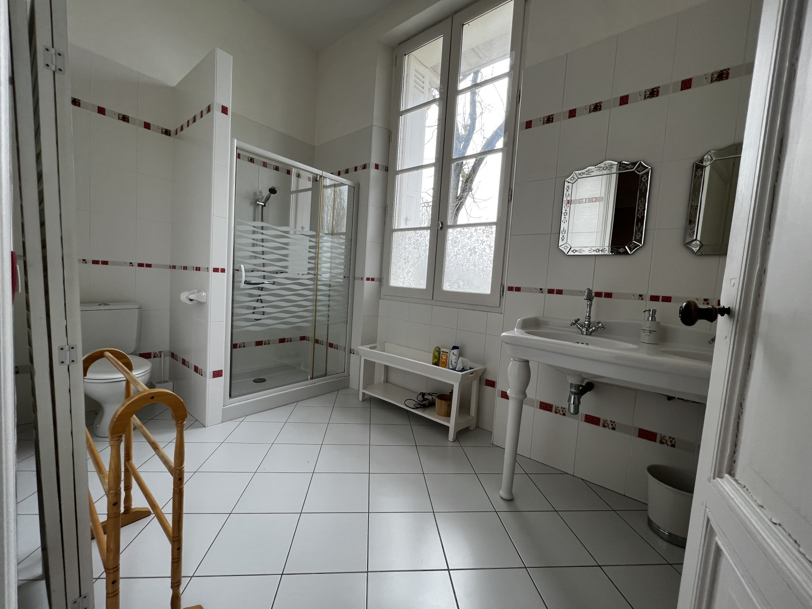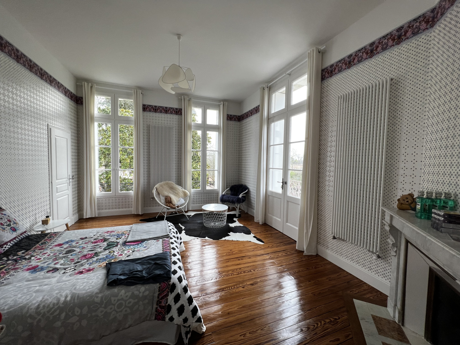 Située dans le parc régional des Landes de Gascogne à 52 km au sud-sud-est de Bordeaux, à 17 km au sud-ouest de Langon, et à 14 km à l'ouest de Bazas, au centre du village, se trouve cette magnifique maison de maitre. La bâtisse se compose au rdc d'une entrée traversante au charme ancien conservé desservant un salon avec bowwindow, une bibliothèque, une salle à manger, une cuisine avec remise, 2 grandes chambres avec sde et toilettes privatifs. Un escalier en pierre permet de rejoindre l'étage desservit par un palier traversant ou viennent se rejoindre 6 chambres (dont une suite familiale de 2 chambres en enfilade avec sde toilettes privatif, 2 avec sde toilettes privatifs et une sde commune aux autres), un bureau, un dressing. Une dépendance composée de 3 chais, anciennes écuries, une partie ouverte et un somptueux grenier, viennent compléter cet ensemble rare. Parc arboré, disposant d'une piscine traditionnelle, et clos de murs en pierres. Honoraires charge vendeurs. Ref 4541